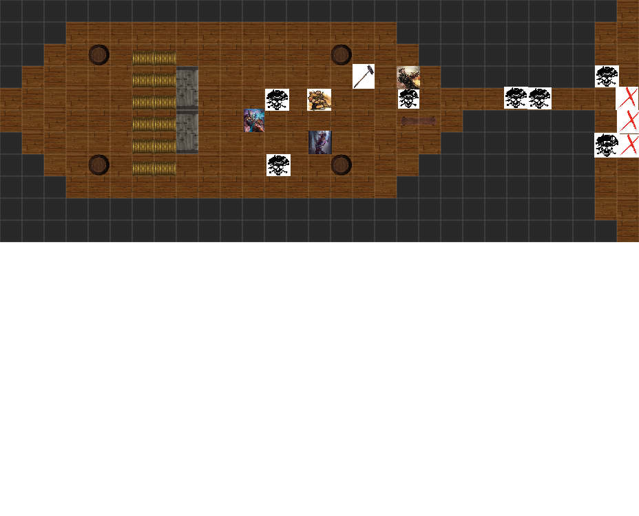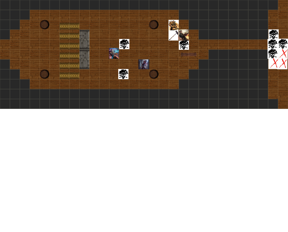 2 Maggio 20178 anni Autore comment_1336785 Caru Spoiler Riesci a colpire il pirata, ma il danno non è sufficiente a stordirlo. Prende 6 danni Cobb Spoiler Il tuo colpo va a segno, senti la tibia del tuo avversario rompersi sotto la forza del colpo. L'avversario prende 19 danni (critico numero 2 della campagna) Sahavni Spoiler Il tuo colpo centra i uno dei due pirati sulla piattaforma, infliggendo 9 danni e facendolo cadere, il suo compagno però riesce ad afferrarlo ed impedirgli di cadere Iqua Spoiler Il tuo colpo va a segno sul pirata che stava sulla passerella, infliggendo 13 danni. Lo shock fa sì che lasci andare il suo compagno, che cade nel vuoto. Spoiler Per voi ho usato le icone che mi avete indicato, se sono troppo piccole basta dirlo. I pirati sono indicati con un Jolly Roger mentre le X sono gli ostaggi. La situazione attuale è questa Segnala