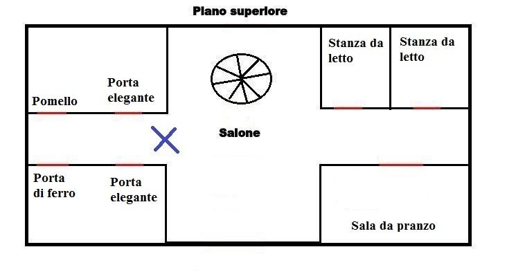 5 Ottobre 20178 anni Autore comment_1391324 @piano terra Spoiler Vi appostate per vedere se la nana esce dalla sua stanza, ma dopo qualche minuto nulla accade e anzi nella camera sembra esserci il silenzio assoluto. Decidete quindi di recarvi al piano superiore; salendo le scale, incrociate Ghorash e Theren diretti verso il lato sinistro del corridoio. @Ghorash Spoiler Mentre vi dirigete al corridoio a sinistra, incrociate gli altri vostri compagni mentre salgono le scale. Vi trovate davanti un corridoio con altre 4 porte. Le prime due - alla vostra destra e alla vostra sinistra - sono in legno massiccio, finemente lavorate per mostrare scene di caccia e animali feroci: entrambe sono dotate di una serratura. La seconda porta a destra è sempre in legno, ma non è lavorato: è provvista di un semplice pomello. La porta decisamente più inusuale è la seconda a sinistra: è una spessa porta in ferro battuto. Non ha una serratura, ma è tenuta chiusa da una robusta catena e da un lucchetto, che in questo momento è aperto. Segnala