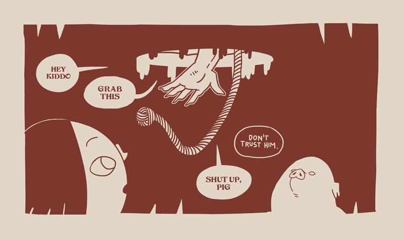 da tumblr: "She grabs the rope and climbs back to the surface. A fancy wizard man greets her."