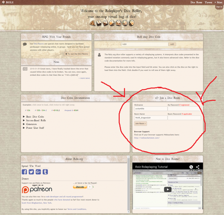 Andare sulla sezione "join a dice room" [che a me risulta a destra, checché dica gamma!] e inserire un nickname e il nome della stanza: