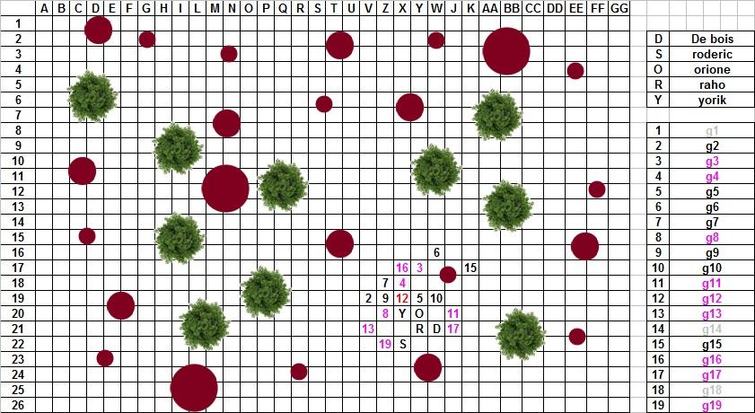 Mi sposto in avanti di un quadretto, sperando che Orione e Yorik arretrino lasciando me al centro [la cosa migliore sarebbe scambiarmi con Orione]