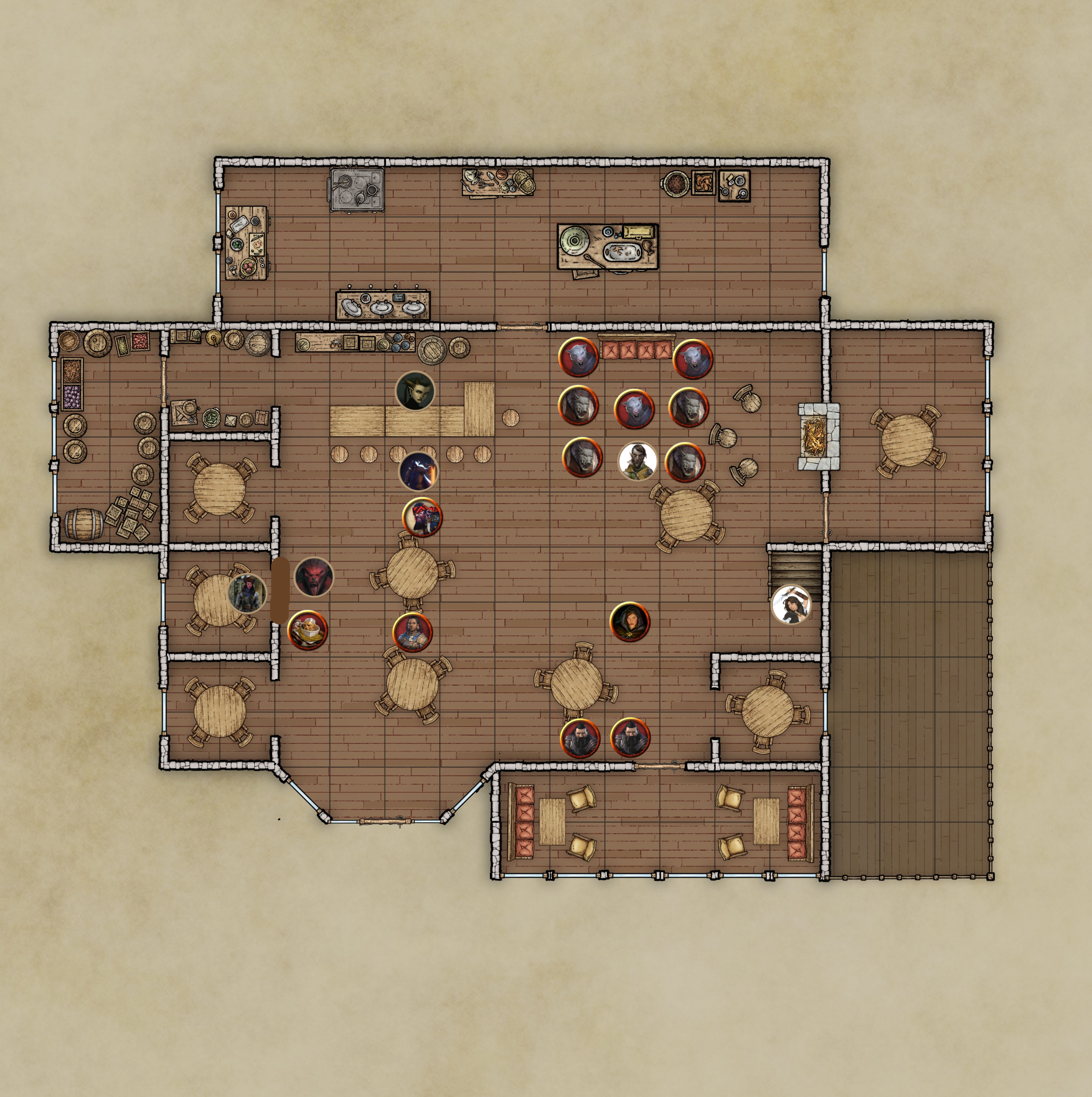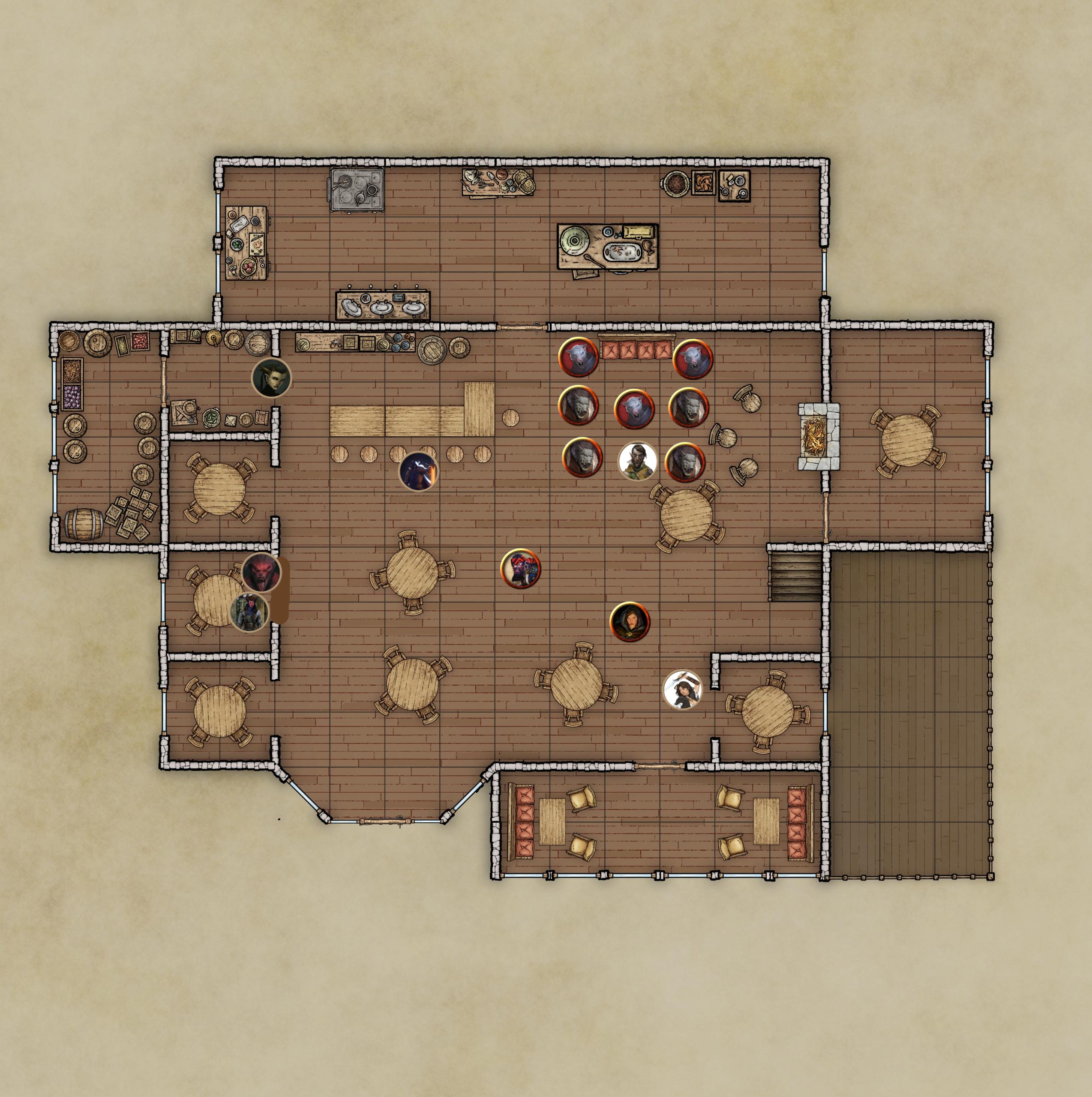 Subito entrano nella taverna delle figure che riconoscete subito come pirati. Quello che sembra il capo, un umano con un occhio cieco, esordisce Sono il capitano Lekard Cadavrus e questi sono alcuni dei miei uomini, siamo ordinari marinai. dice ridacchiando Cerchiamo una donna che frequenta questa sudicia locanda, a cui piace barare a Ossa di Baldur e che ci deve una montagna di soldi. Si fa chiamare Tarina. Offro un giro di qualunque brodaglia si beva da queste parti se sapete dove trovarla, 1000 monete se me la consegnate viva e legata. L'uomo si guarda attorno con calma, la mano sull'elsa della spada. Ah eccoti! Bene risparmierò quelle monete! esclama individuata la donna, sulle scale. Non verrò senza difendermi risponde Tarina estraendo il suo pugnale.
