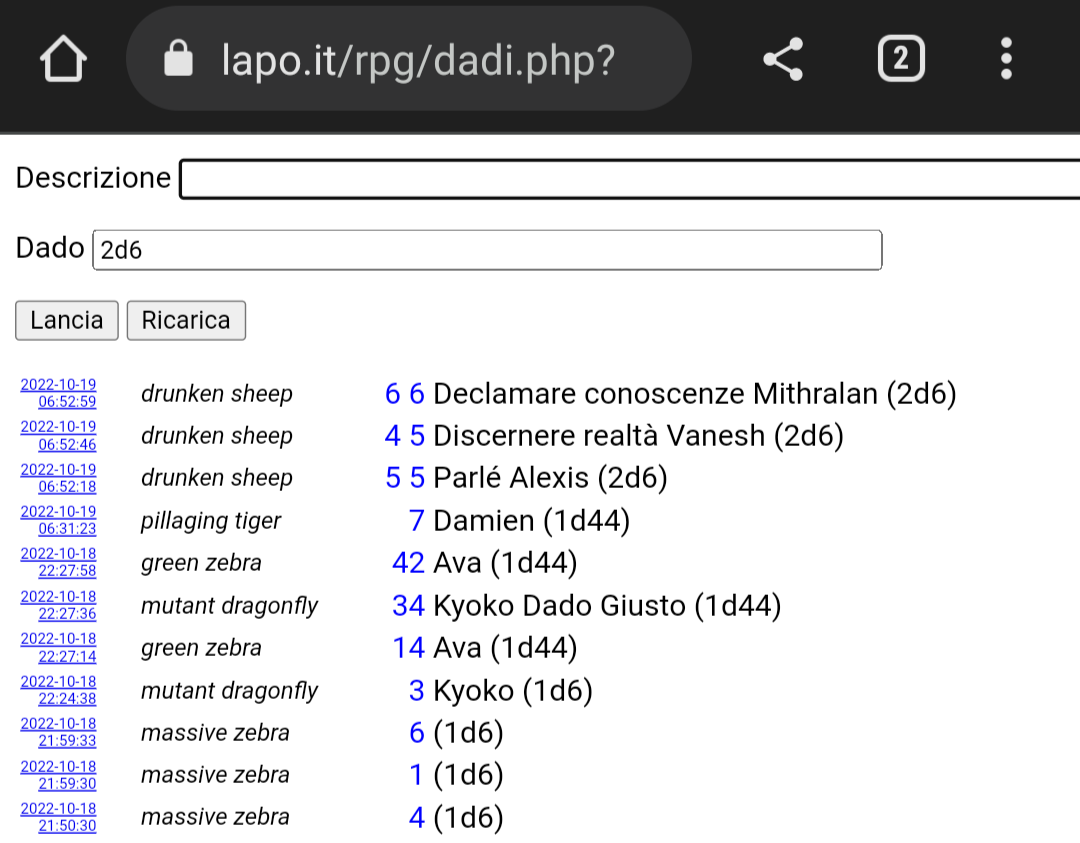(Questo mi fa pensare che sarà meglio se a breve iniziate a rollare voi così potete già farmi le domande o scegliere le opzioni in base al roll)