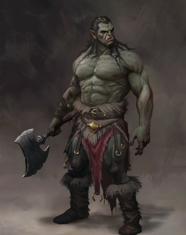 Alzo il braccio e tocco il petto del mezz'orco col palmo della mano...Io Rezara...abbasso il braccio...