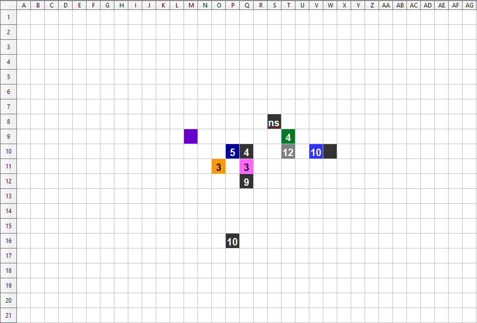 R14 movimento in S11 con estrazione giavellotto, provoca AdO da parte di Occhiotorto lancia lunga 7+3= 10 mancato, secondo movimento R10, R9, S8 [C'è scritto ns perché non ha lo scudo a differenza degli altri, lo ha lasciato a terra con il randello quando è stato spaventato da Karandrak]