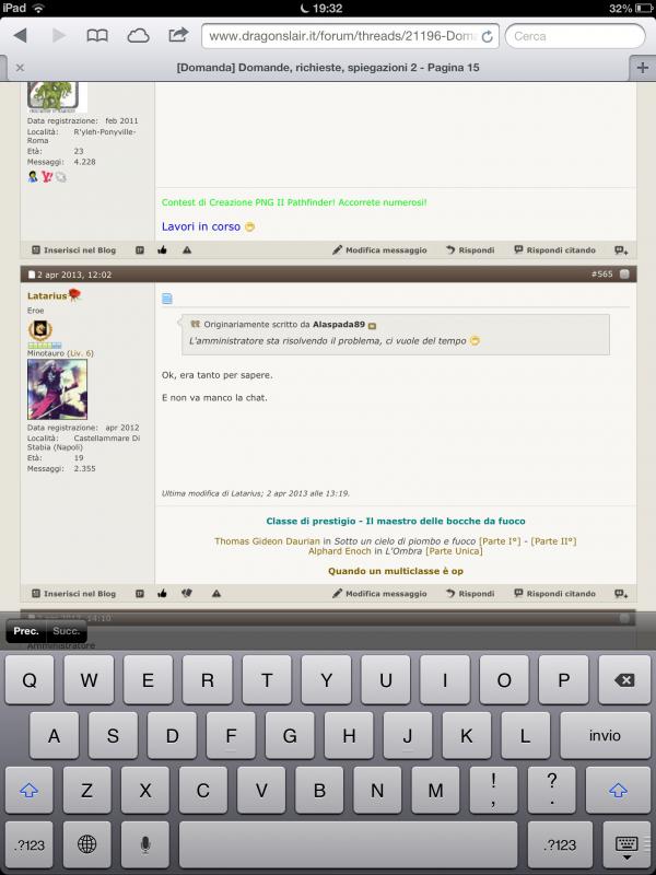 13 Aprile 201312 anni Amministratore comment_832172 Non è proprio un problema, ma le persone online sul mio ipad hanno una rosa al posto del pallino. Allego una immagine, ma vorrei capire [ATTACH=CONFIG]11795[/ATTACH] Non ne ho idea. L'immagine dovrebbe essere questa: http://www.dragonslair.it/forum/dl_style2/statusicon/user-offline.png Dovresti vedere il codice della pagina se il link all'immagine è quello. In ogni caso appena ho accesso ad un iPad controllo.