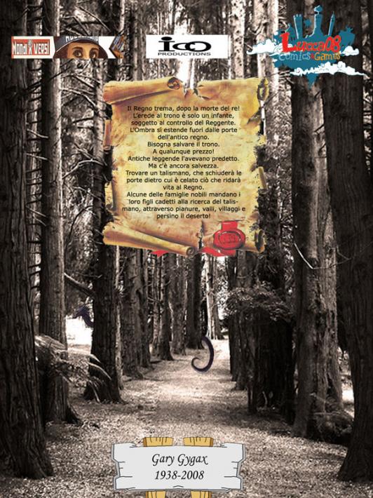 1 Ottobre 200817 anni comment_255542 Sul sentiero di Gary Alla ricerca delle nostre radici. Luccca Games e Mondiversi sono lieti di presentare la prima portata del prelibato menù dedicato al Tributo per Gary Gygax, il co-autore di Dungeons&Dragons e l’inventore di Advanced Dungeons&Dragons, venuto a mancare nella primavera di quest’anno. Alla metà di quest'estate è stata annunciata la presenza di Larry Elmore, invitato a officiare i momenti fondamentali del tributo a Gary Gygax. Sarà infatti il maestro del Kentucky a inaugurare la manifestazione e il muro del tributo dei fan e del loro affetto dedicato al padre dei giochi di ruolo. Sarà sempre il mitico autore dell’illustrazione di copertina della scatola rossa a chiudere con l'appuntamento della domenica in cui in sala incontri, dove ricorderemo la storia del gioco di ruolo dagli esordi a oggi. Per ricordare degnamente chi ha originato il movimento, non potevamo non preparare un superbo palinsesto di tornei per squadernare tutto l'universo ludico di Gygax. Se lo vogliamo commemorare degnamente, giochiamo, e facciamolo con i suoi giochi! L’evento principale consisterà in un torneo dalla durata di ben TRE giorni che, in un’unica grande avventura, ripercorrerà tre titoli: • Dungeon&Dragons “scatola rossa”, • Advanced Dungeons&Dragons Prima Edizione • Advanced Dungeons&Dragons Seconda Edizione Un'imperdibile cavalcata nel fantastico, per quello che non era solo un grande Game-Designer ma anche un demiurgo e creatore di mondi. Inizierete come personaggi di basso livello, come dei novelli avventurieri, utilizzando il regolamento probabilmente più diffuso e conosciuto al mondo: quello della mitica “scatola rossa”. Crescerete con AD&D 1° Edizione, sistema che molti in Italia non hanno mai avuto l’opportunità di conoscere a fondo (quale migliore occasione per colmare tale lacuna?!) Finirete indubbiamente per diventare degli eroi passando ad AD&D 2 Edizione, il regolamento che ha regnato incontrastato nel mondo per oltre un decennio! Oltre a questo, tanti i side-events dedicati alle produzioni minori, da Lejendary Adventures a Cyborg Commando. Durante tutti i quattro giorni della manifestazione saranno quindi a disposizione nell'area dimostrazione di Lucca Games, spazi per partecipare a demo completamente gratuite e libere, per conoscere meglio questo prolifico autore. Per non dimenticare le nostre radici, venite a celebrare una grande persona e un magnifico autore, ripercorrendo il sentiero insieme a noi! Venite a Lucca Games! NOTE TECNICHE SUL TORNEO: 60 posti a disposizione, selezionati su base cronologica. 1° Premio: D&D White Basic Set – la mitica Scatola Bianca! Gentilmente messa a disposizione da Mondiversi. Costo: 27,00 Euro comprensivi di abbonamento per l’ingresso a tutti i 4 giorni della manifestazione e un esclusivo attestato di partecipazione a questo imperdibile evento. Il Regno trema, dopo la morte del re! L’erede al trono è solo un infante, soggetto al controllo del Reggente. L'Ombra si estende fuori dalle porte dell'antico regno. Bisogna salvare il trono. A qualunque prezzo! Antiche leggende l'avevano predetto. Antiche leggende secondo le quali c'è ancora una salvezza. Trovare un talismano, che schiuderà le porte dietro cui è celato ciò che ridarà vita al Regno. Alcune delle famiglie nobili mandano i loro figli cadetti alla ricerca del talismano, attraverso pianure, valli, villaggi e persino il deserto! Sarete anche voi della caccia? Torneo Memoriale Gary Gygax: un'avventura che dalla ormai mitica scatola blu di D&D raggiunge la seconda edizione di AD&D, passando per la prima edizione di AD&D, si snoda attraverso i più famosi prodotti della mente del grande autore del gioco di ruolo per antonomasia. Per divertirsi con i giochi di sua creazione, non perdetevi questo torneo, strutturato in 3 “episodi” da giocarsi nelle giornate di venerdì, sabato e domenica! Per ogni iscrizioni e ulteriori informazioni: torneodungeonsanddragons@gmail.com Gary Ernest Gygax (27 luglio 1938 - 4 marzo 2008) Gygax è conosciuto sopratutto per aver fondato nel 1974 la Tactical Studies Rules, meglio conosciuta come TSR, e aver creato nel 1973, insieme a Dave Arneson, Dungeons&Dragons D&D, uno dei più famosi, se non il più famoso, gioco di ruolo del mondo. Nel 1977 Gygax diede vita all’Advanced Dungeons&Dragons, con la pubblicazione del suo primo volume, il Monster Manual, seguito da numerosi altri. Gygax verrà estromesso dalla sua stessa creatura, la TSR, nel 1985, mentre stava lavorando con la CBS per la creazione del cartone di D&D, giunto anche da noi in Italia. Gygax rimarrà sempre legato al mondo ludico dando vita ad altri giochi di ruolo come Dangerous Journeys e Lejendary Adventure e riavvicinandosi a D&D tramite il d20 sytem pubblicando alcuni volumi come Castle&Crusades e Catle Zagyg. Ma elencare la compelta bibliografia di Gygax, coprendente numerosi articoli di giornale e alcuni romanzi, sarebbe cosa difficilissima e lunghissima. Segnala