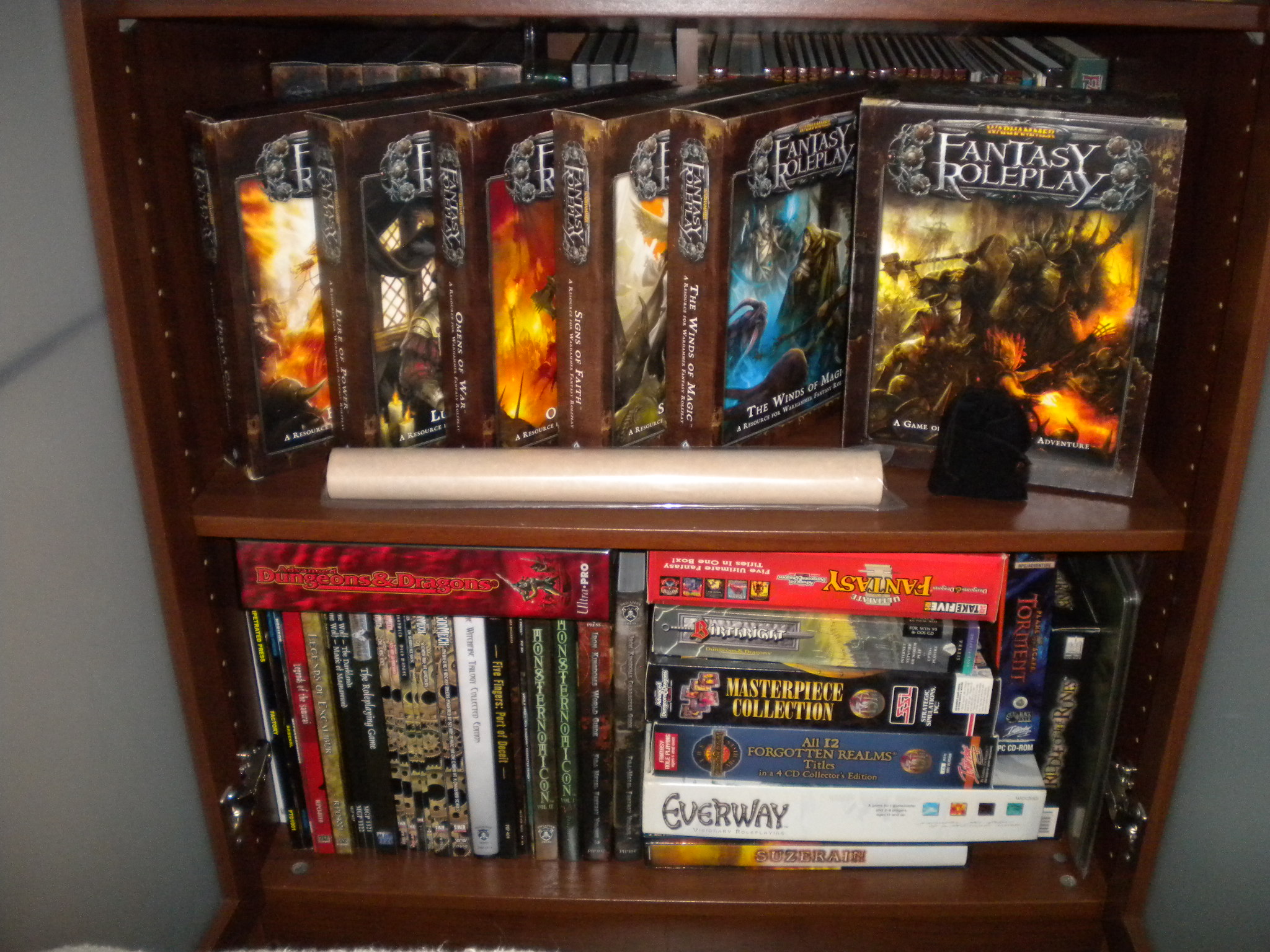5° ripiano - manuali Warhammer Fantasy RPG 1a edizione, collezione completa Warhammer Fantasy RPG 2a e 3a edizione
