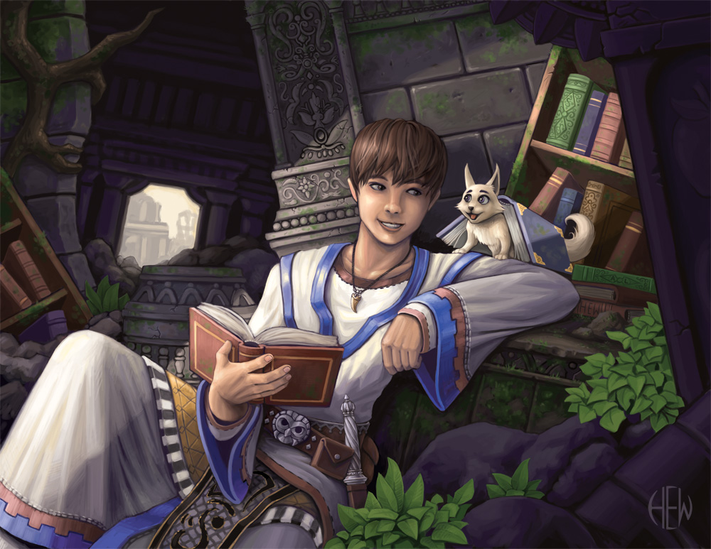 Immagine di Drophar. Rappresenta abbastanza bene il volto del personaggio. Ma il gatto, l'abbigliamento e la passione per i libri non corrispondono alla realtà