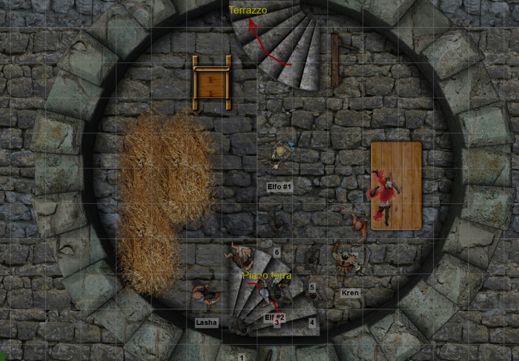 Hak il Monaco contro il capo dei mezzorchi, aiutato dagli elfi prigionieri appena liberati.