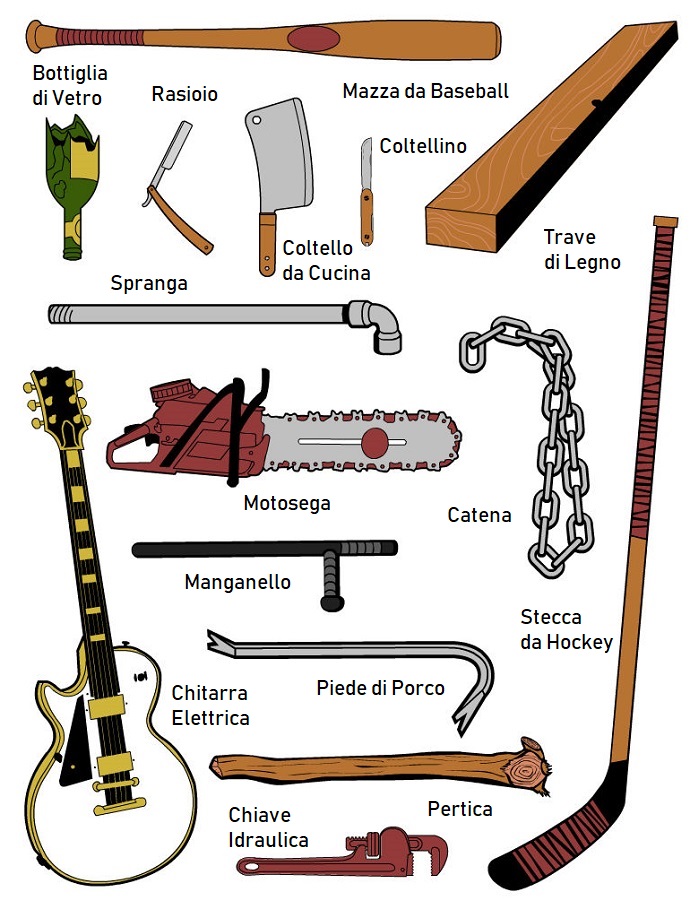 Queste "armi" sono molto comuni. Per dirla tutta, non sono nemmeno armi, ma oggetti e attrezzi di uso quotidiano tanto facili da utilizzare quanto necessarie in caso di estremo bisogno.