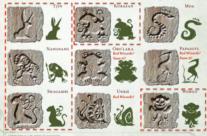 Altri attori ad Omu degni di essere menzionati sono i coboldi che servono Acererak e gi strani vegepigmei che svolgono sacrifici di grung presso la pozza di lava. Leggetevi tutto il capitolo e sottolineate gli incontri che vorreste svolgere durante le vostre partite.