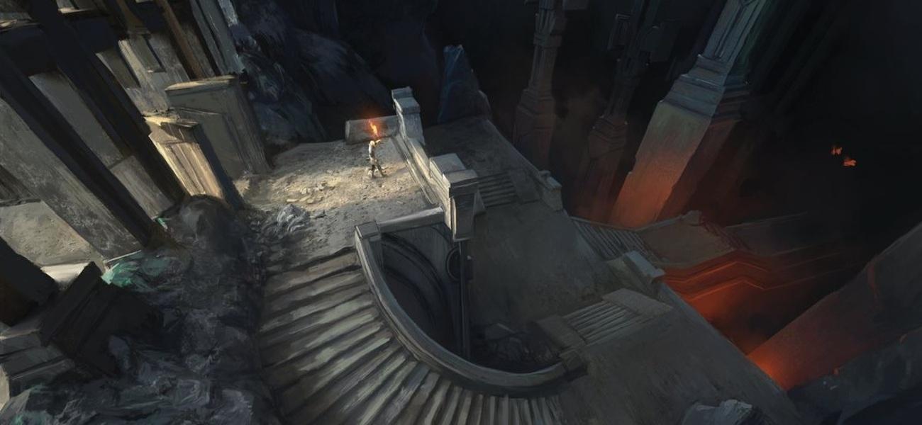 Al centro della stanza c'è una piccola piattaforma di pietra che si innalza dal suolo con 3 scalini. In cima alla piattaforma c'è una grossa arcata decorato. È scolpita da entrambi i lati con una dettagliata raffigurazione di una battaglia tra umani e demoni. Ciascun esercito inizia vicino al pavimento, e nella raffigurazione marcia su per i lati dell'arcata, fino ad incontrarsi. Gli umani sembrano vittoriosi, dato che hanno spinto i demoni oltre il centro dell'arco. A parte questi bassorilievi, l'arcata sembra una semplice struttura di pietra senza alcuna proprietà magica e senza alcuno scopo al di là della semplice decorazione.