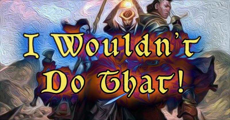 E non voglio parlare male dell'interpretare a fondo. Sono decisamente a favore dell'immersione nei personaggi che si stanno giocando e nel mondo di gioco. E sicuramente è difficile giustificare qualcosa come un paladino che deve entrare in un tempio e massacrare un gruppo di orfani (e se sono queste le situazioni in cui vi trovate, allora probabilmente avete problemi decisamente più grossi di quelli con cui questo articolo potrebbe aiutarvi). Ma non voglio parlare di questi esempi estremi. Voglio parlare delle volte in cui l'avventura è di fronte a voi. Quando si tratta del vostro virtuoso personaggio che aiuta il ladro a derubare un tempio. Oppure quando dovete fermare una banda di banditi assetati di sangue quando il vostro mercenario (che NON ha in segreto un cuore d'oro) non è stato pagato. Oppure assalire la torre di un mago quando il vostro personaggio pensa che farlo sia follia.
