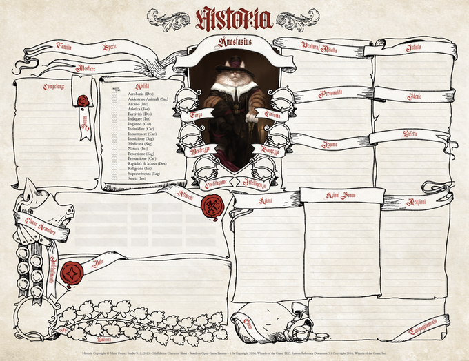 Historia è un ambientazione rinascimentale con toni dark fantasy pensata per la quinta edizione del gioco di ruolo più famoso del mondo. Il gioco è ambientato a Vesteria, una terra piena di intrighi e popolata da animali antropomorfici. Ogni personaggio potrà appartenere a differenti Specie di creature, con oltre 50 possibili creature antropomorfiche giocabili. Oltre alla Specie i personaggi potranno scegliere delle Professioni e l'appartenenza a una delle varie Fazioni che popolano questo mondo ricco di azioni, misteri ed avventura.