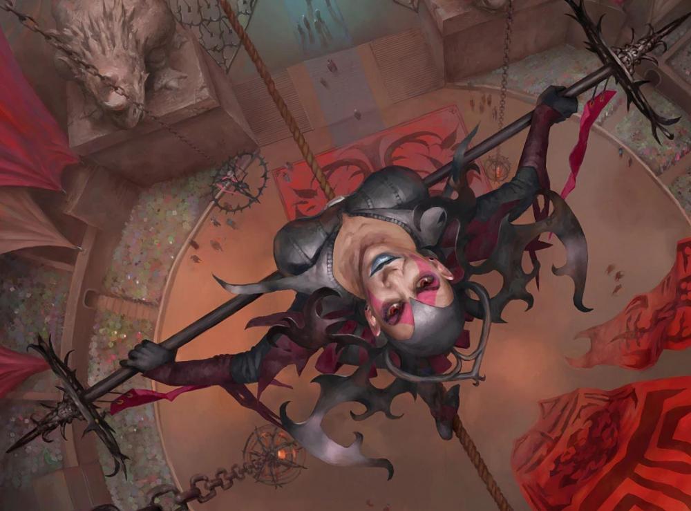 1 puntoSe vuoi guarda la gilda Rakdos di Ravnica. Se non hai il manuale trovi anche molto materiale online. Sono praticamente circensi con spettacoli basati sul sangue, gli omicidi, il fuoco.... Potresti trovare qualche ispirazione.(guarda nello spoiler)1 punto
