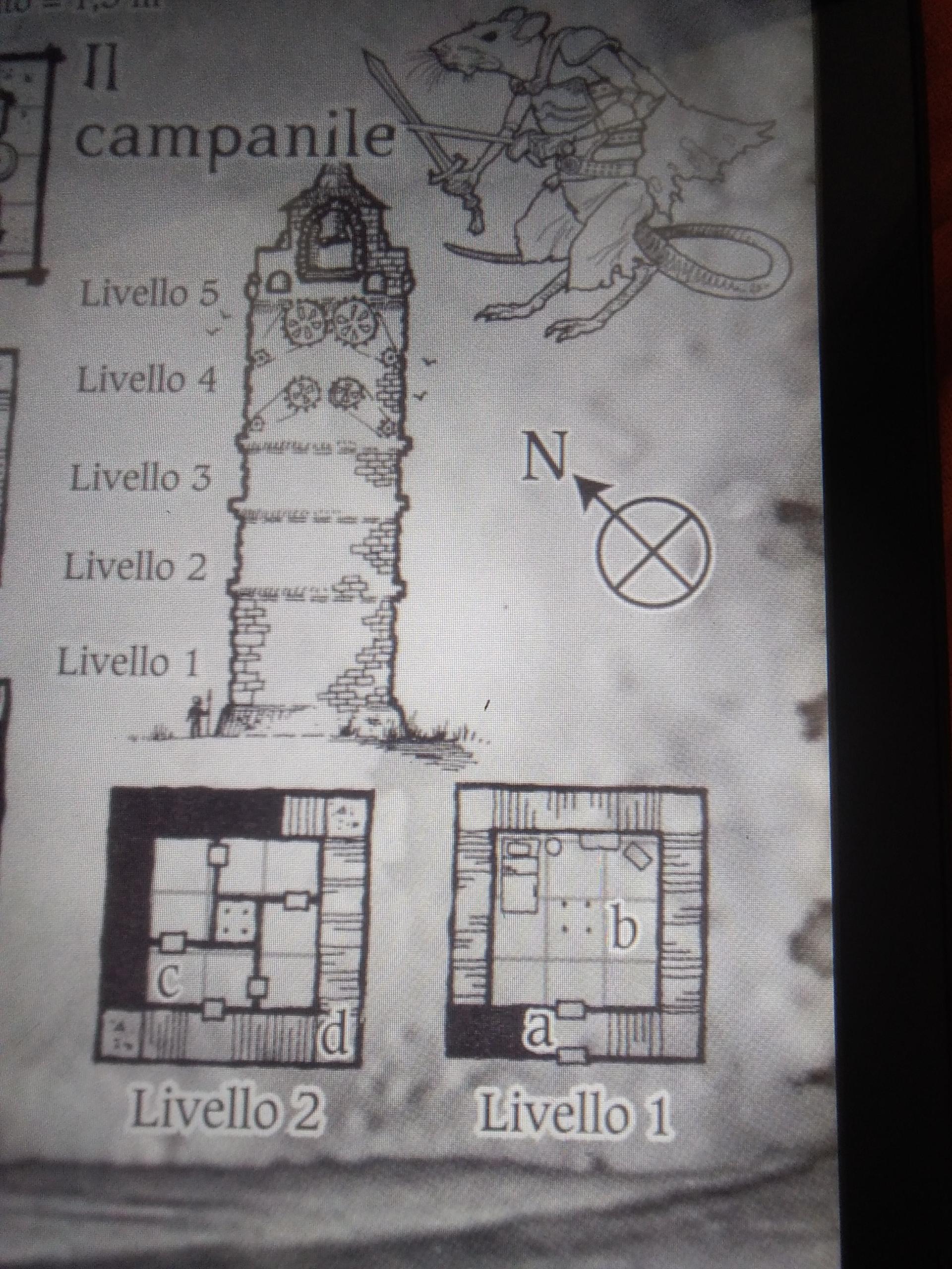 Kerek Grunn Continuo a camminare in testa al gruppo con le mie "pentole armatura" che sferragliano ad ogni passo. Sento come il nano dell'altra squadra si complimenta per la magnifica forma di quella dannata, paffutissima gallina e l'invidia mi morde. Proprio un bel pennuto, gne, gne,gne. Spero che abbia fame di nani, quel pollo ambulante. brontolo tra me e me facendo il verso al nano nel sommesso eco interno dello scolapasta che uso come elmo (con buchi apribili per gli occhi, le orecchie e soprattutto, il mio naso lungo), il tutto coperto dal clangore della batteria da cucina super-completa che mi porto addosso. Quando vedo la torre di avvistamento, non ho moti di entusiasmo, la mia famiglia è spesso ospite di quell'edificio per feste, proclami, riunioni, affari... e io, per non far fare figuraccia al buon nome dei Grunn, restavo sempre a casa. La vista della costruzione perimetrale del villaggio mi dà quindi sensazioni contrastanti di gioia, orgoglio e un po' d'astio che cerco di nascondere abbassando la visiera dello scolapasta.1 punto