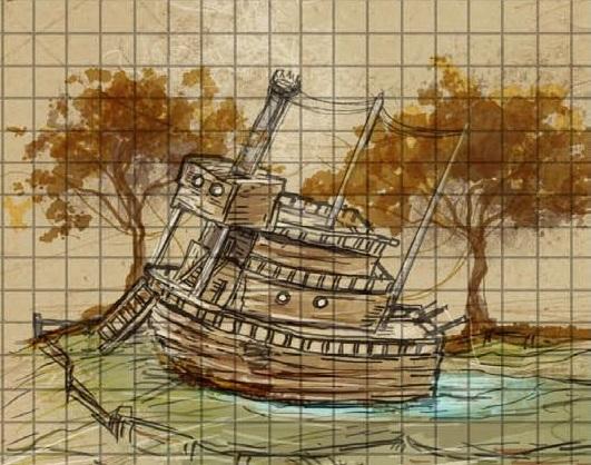 Quella gran.... vabbè, ci siamo capiti... Moltezampe va via, con il suo sangue fetoso e nerastro che forma una scia facile facile da seguire. E per un po' pensate pure di seguirla e di finirla... e se poi te ne penti? Lasciamo stare e proseguiamo seguendo la mappa, va. Arrivate finalmente al vecchio relitto, ed è davvero vecchio. Ma proprio vecchio e fatiscente! Se ne sta là, appantanato nella zozzeria della palude, lontano dal mare ma abbastanza vicino da sentirne il rumore della risacca. Forse quando si è arenata il mare arrivava fin qua. O forse il vento a cerchio l'ha portata così lontana. BOH! Fatto sta che sta lì, con la scritta in piena vista. Lesti distogliete lo sguardo dalla scritta, che potrebbe rubarvi le parole dalla testa! Non sia mai! Ma la cosa che non vi sconfiffera particolarmente è che tutto attorno alla vecchia barca c'hanno messo una recinzione. Chi cacchiarola ha messo una recinzione? E soprattutto... quello era un nitrito? E non era un latrato lontano quello che avete sentito venendo qua? Cani e cavalli... o porca cacca! Terribili e paurosi! Fate il giro attorno, ma non vedete nulla. Nulla alla vista, e ora ci sta un bel silenzio, però chi può dirlo. Potrebbe essere tutto. Non vi aspettavate nemmeno di trovare la recinzione...
