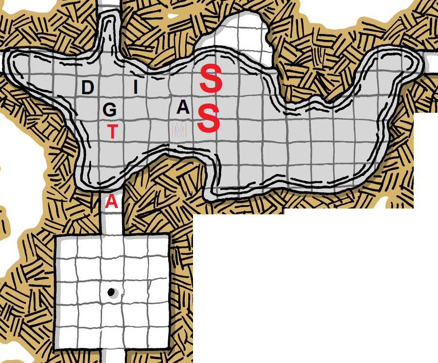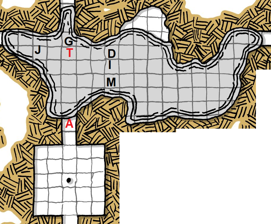 Nonostante il caos e la confusione (o forse proprio per questo) il tentativo di Gregor non va in porto; Majida si avvicina e lancia una daga. Di certo non è un'avventuriera ma ha preso delle lezioni di scherma e arma bianca... però non riesce comunque a portare a segno il colpo. Complice forse il terreno fangoso e viscido. La freccia di Ivellios è più precisa e affonda nella schiena del cultista più avanzato. Un cultista avanza su Majida ma la manca; l'altro va a dar manforte contro Jalrai, ferendo il mercenario. Marito e moglie scattano all'unisono: lei decapita l'uomo che aveva assalito Majida, e lui abbatte quello già colpito dalla freccia. Jalrai indietreggia e scocca contro il sopravvissuto, ma manca malamente. Il nemico è in minoranza e state per spacciarlo... ma la confusione ha attirato l'attenzione di chi ancora si trovava nella stanza a sud. Sulla porta si affaccia nientemeno che Alend Rusen, il sacerdote del tempio di Yesna. L'uomo porta solo i pantaloni e ha petto, volto e braccia sporchi di cenere e carbone, e impugna una spada di bronzo con rune incandescenti. Vi guarda stupito, poi fa un fischio acuto e grida "Attaccate gli intrusi!" Al suo comando dal fango emergono tre delle grosse creature simili a salamandre, fameliche! Una chiude le fauci sulla gioielliera, con uno schiocco secco di ossa e un grido disperato della donna. Mentre il secondo si avvicina muovendosi lento nel fango, il terzo si affanna a mordere Gregor ma lo manca di poco... invisibile o no, evidentemente ne avverte la presenza mentre si sposta nella melma quasi asciutta. Iniziativa