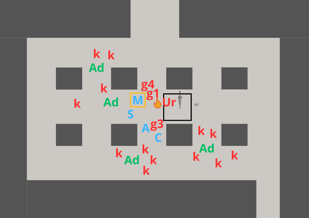 Le fiamme di Chazia mondano uno dei klaya all'altro mondo (Qos, probabilmente) e anche gli altri due guerrieri bruciano quasi fino a morire. Forse solo pochi istanti li separano dall'oblio, eppure cercano ancora di reggersi in piedi. Gridando, Moggo sfreccia in avanti con l'arma alzata. Il guerriero vicino a lui prova a colpirlo, ma è lento e scoordinato e non ci riesce. Moggo avanza, una runa luminosa sulla lama pesante. Si avventa su Urvald e lo coglie in pieno petto. Un lampo, un tuono, e la magia runica si scarica sul re e sul suo scudiero. Quest'ultimo viene scagliato a sfracellarsi lontano dalla scena. Ma Moggo paga a caro prezzo la sua stessa furia: il re ha mosso rapidamente la lancia e con la lama ha sfregiato l'Adnur spillandone altro sangue. Iniziativa Andr Guardie (g4 32 danni). Snorri Urvald - 84 danni (reckless, reazione usata) Chazia - 11 danni Moggo - 21 danni