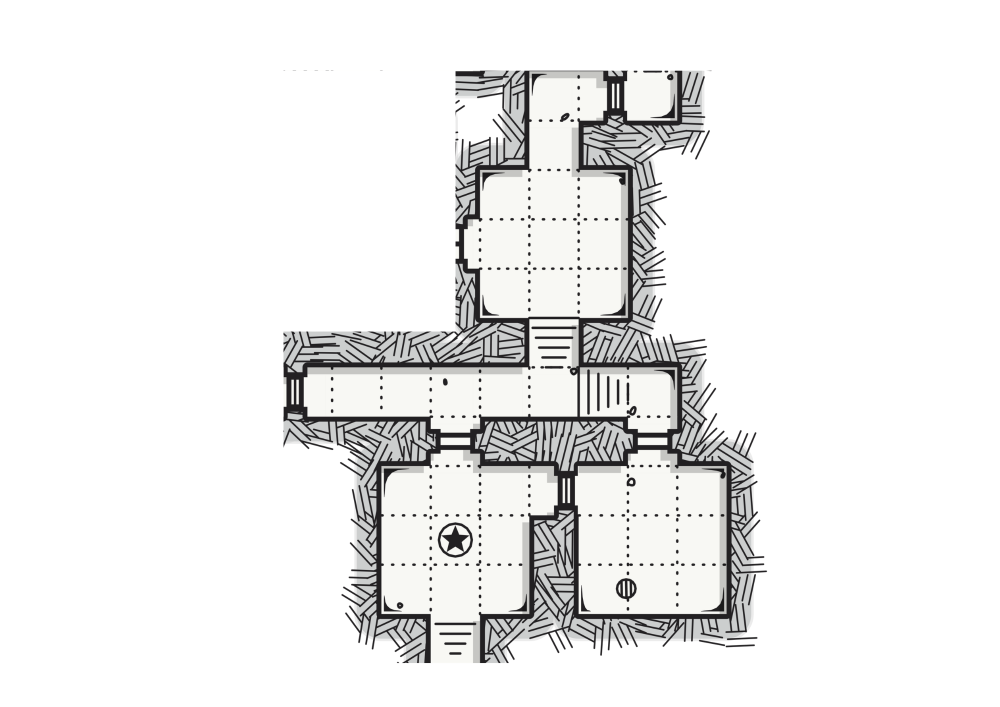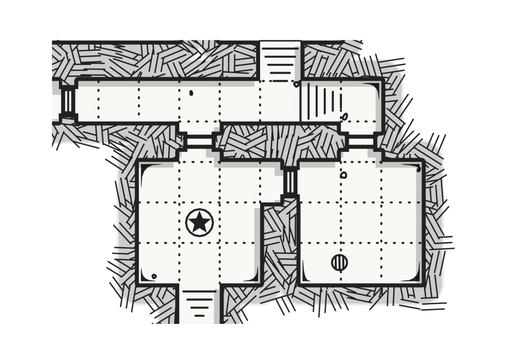 Aguzzate le orecchie e non sentite nulla. Non un suono, non un rumore. Così risalite le scale, i gradini sono consunti in certi punti, calpestati per secoli da piedi barbari e nemici. Sbucate quasi subito in una grande stanza quadrata. Qui una serie di impalcature di legno creano diversi piani e soppalchi, usando come basi d'appoggio dei tavoli di pietra e delle rientranze nelle pareti. In origine era un refettorio-dormitorio per la guardia della fortezza, ma gli urkyr devono averlo trasformato in una sala per riposare. L'odore qui è forte, odore di animali e sudore, cibo e fumo. Le pareti sono affrescate così come il soffitto, ma sempre da mani urkyr: una cometa che si spezza in due parti copre buona parte della volta. Dalla rottura cadono tre schegge simili a lacrime, mentre lungo la cima delle pareti, il "suolo" del disegno, decine di volti orcheschi e bestiali guardano la scena con orrore e paura. Una porta a sinistra, chiusa come quella nel corridoio, fa il paio con un portale dinanzi a voi, sbarrato nello stesso modo dopo una curva a gomito a destra. Sulla porta a sinistra ci sono recenti segni di scalfiture e scalpellamenti, segni lasciati da punte di metallo. La porta e il pavimento sono coperti di sangue vecchio... ma non poi così vecchio: forse una decina di giorni. Anche i soppalchi sono malmessi e danneggiati, segno di uno scontro armato.