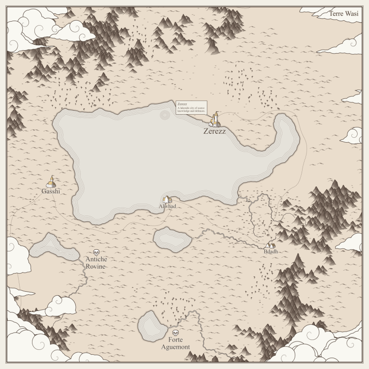 Tornate da Istaval, che nel frattempo si è procurato una sorta di mappa "L'avevano nella locanda, non gli mancherà... non credo nemmeno che si accorgeranno che è sparita" aggiunge con un sorriso "Non so se è troppo precisa, io conosco la strada fino al lago grande, o fino a vicino le rovine a sud-ovest" Secondo lui la mappa non è molto in scala, ma Alwhad è ad un giorno di viaggio e le rovine dovrebbero essere poco più distanti.