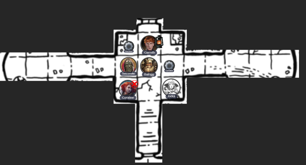 16. @L_Oscuro se si sposta il Senzavolto, entrando nella sala e lasciando una casella libera per te a fiaco a Coraline, Indol potrebbe entrare e combattere in mischia. Vogliamo procedere così?