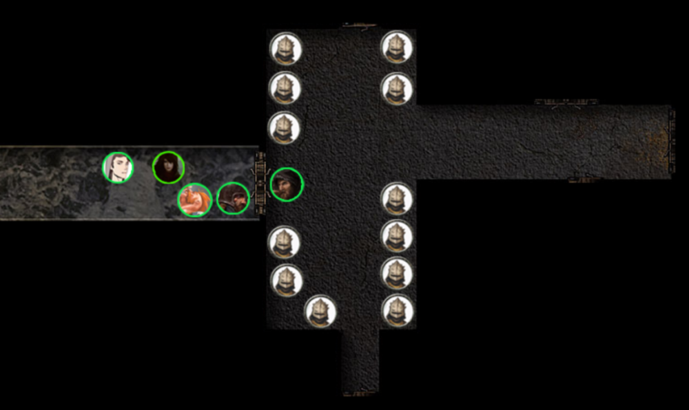 DM Lunedì 18 novembre 764 - notte, giorno? Avete perso la concezione del tempo [Miniera] Edwarf decide di scardinare l'entrata.. ..il silenzio non è più contemplato: piazza sotto la fessura tra pavimento e legno rinforzato una sbarra di ferro che (sapientemente) si porta sempre dietro alzandola di quel che basta per consentire a Goril di sollevarla dal cardine inferiore; il risultato è la caduta rovinosa e rumorosa della porta verso di voi. viene però così rivelato in toto lo spazio che c'è dietro, almeno per Edwarf che sbircia e vi comunica che cosa vede: una grande stanza rettangolare costellata da armature appoggiate lungo tutto il perimetro e illuminata da quelle che sembrano essere delle torce perenni (ne contate 4 in totale), ai lati rispetto a dove vi trovate 2 porte, e infine davanti un corridoio non troppo lungo che si conclude con.. indovinate? L'ennesima porta. La particolarità di questa stanza è che le armature sono appoggiate sì lungo il muro.. ma all'interno sono tutte quante "abitate" da scheletri di vario tipo. Siete certi che alcuni siano nani data l'altezza, mentre altri paiono umanoidi. Sono ferme ..per ora