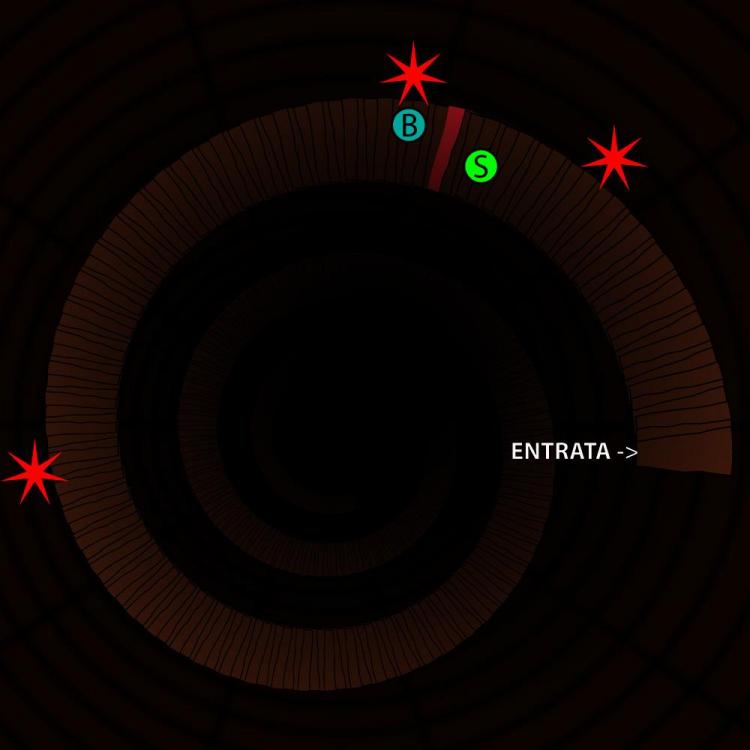 15. @L_Oscuro Così non si attiva nessun Discernere. Cosa fai esattamente? Fai capolino con la testa e dai un’occhiata? Hai una torcia? Un binocolo? Se fai capolino e basta, ti descrivo quello che vedi dalla tua posizione. --------------------- Per disattivare trappole l’affacciarsi sarebbe anche ok, almeno per prendere le prese. Ad ogni modo: Dove lo hai fatto sulle scale che scendono, o su quelle che salgono? Sono due aree diverse. Hai fatto 9, ok. E che domanda hai scelto?