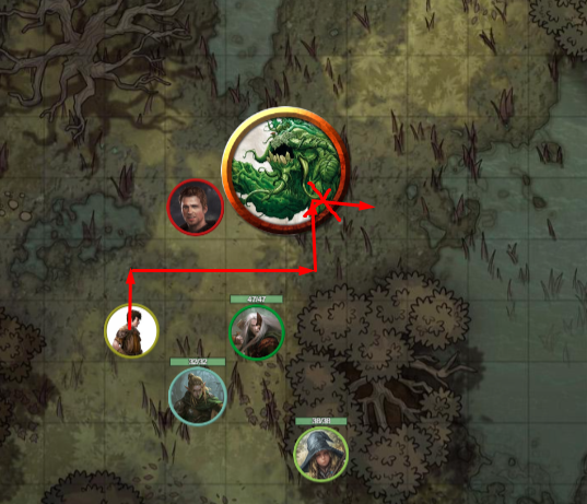 2. Flambie Quando sento, percepisco qualcosa di sbagliato e di pericoloso, subito la mano scatta veloce verso Telemnar e porto lo scudo di fronte a me. Poi vedo questo accumulo di piante emergere dall'acqua. Sorrido, mentre i miei compagni già si danno da fare, ma la creatura furibonda si scaglia contro Brando, facendo un tonfo sordo sulla sua schiena. Digrigno i denti, inferocito, sento caldo addosso e ho voglia di farlo a pezzetti. E poi, cominciano ad apparire vari spettri intorno a noi, i soliti spiriti guerrieri halfling, che cominciano a circondare la creatura e a mettersi a difesa di Brando, Lily, Elaethan e Nicodemo, ma tra essi ve ne è uno nuovo, un umano visibilmente sfigurato in viso, che si piazza dietro di me, quasi aggrappandosi, sussurrandomi parole di odio e di incitamento all'orecchio. Mi muovo veloce attraverso le gambe dell'obbrobrio, approfittando della situazione per riacquistare l'attenzione su di me, poi comincio a sferzare furiosamente contro le gambe della creatura, puntando a recidere quei viticci che gli fanno da gambe e renderlo meno offensivo. Un taglio verso sinistra e uno a destra, in maniera aggraziata ma terribilmente cattivi.