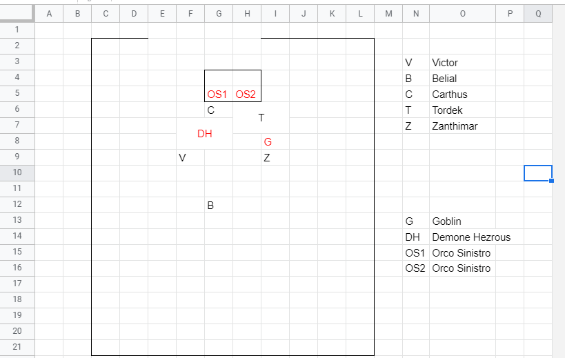 Il gruppo si posiziona nella stanza, il grosso nano avanza verso l'ingresso del cunicolo per studiarlo da vicino. Silenzioso si piega e studia l'intaglio fatto nella roccia viva fatto da mani esperte, mentre il pavimento della struttura è stato divelto brutalmente con dei picconi o altri utensili simili. una piccola pallina luminosa arriva velocemente dal cunicolo ed non appena oltrepassa la stanza si allarga in una esplosione di fuoco, riconoscete la magia è una palla di fuoco, in qualche modo cercate di spostarvi dall'area di effetto ma le fiamme divampano prima che riusciate a spostarvi. Subito dopo due orchi sinistri arrivano correndo dal corridoio, bloccano l'ingresso, i due orchi decidono di accanirsi contro il nano, e le loro armi più volte penetrano le sue difese. Subito dopo un demone Hezrous esce dal cunicolo per posizionarsi fra Victor e Carthus. Infine quasi tutt'uno con le ombre anche un goblin con un grosso naso spunta dal cunicolo, voglioso di infilzare il nano, infilzandolo quasi mortalmente. Percezione Passiva 19+