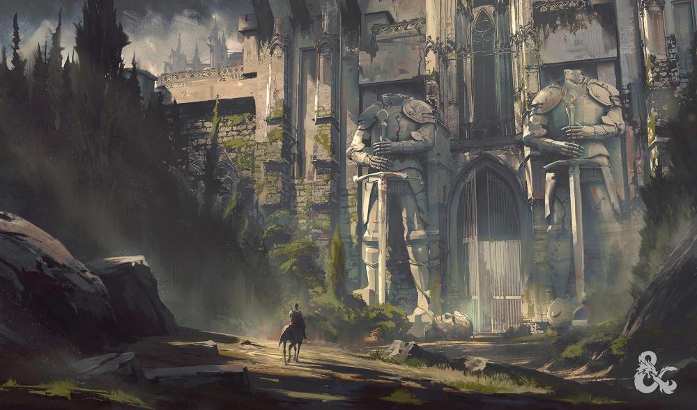 Dalak Tagliavento Proseguite il vostro cammino, cercando per quanto possibile di seguire il sentiero; dopo alcuni minuti il muro di alberi si apre. La nebbia trabocca dalla foresta per ingoiare il sentiero alle vostre spalle. Di fronte a voi, alte mura di pietra grigia spuntano dalla nebbia tra i tronchi impenetrabili che affiancano la strada. Due enormi cancelli di ferro battuto sono ancorati alle colonne portanti. Gocce di rugiada sono aggrappate con fredda tenacia alle sbarre arrugginite. Le statue di due giganteschi guardiani armati affiancano i cancelli, le loro teste giacciono tra i rovi ai loro piedi. Vi accolgono con il loro silenzio. I cancelli sono chiusi, ma appena vi avvicinate si aprono nella vostra direzione per accogliervi, stridendo sui cardini arrugginiti. Non riuscite a capire chi o cosa li abbia fatti aprire