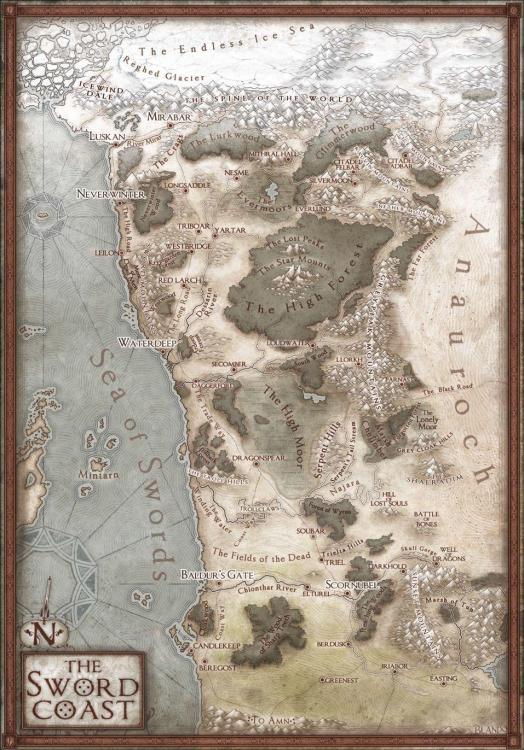 Baldur's Gate: Forse la più importante città della Costa della Spada. E' una potenza sia sul fronte militare, con il suo ingente numero di soldati e mercenari, sia sul fronte commerciale, avendo un ottimo porto e un grande afflusso di mercanti. E' la città nella quale i personaggi si sono incontrati e riuniti.