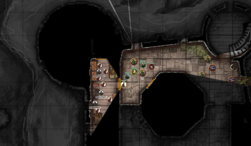 12. Ventiseiesimo giorno di Flamerule, 1489 CV Mare dei Morti - Castel Naerytar Di comune accordo, scegliete la porta che dovrebbe condurvi alle caverne, decisi a eliminare il vostro principale bersaglio, Spattergoo. Flambie si avvicina alla porta, sbirciando al suo interno dal grosso foro per il chiavistello. La porta non è chiusa a chiave, ma abbastanza arrugginita e potrebbe fare rumore. Tutto sulla destra, intravedi una porta chiusa -non sai dire se a chiave o meno- che dovrebbe condurre alla torre interessata. Da quello che vedi, conti sicuramente sei cultisti iniziati (di cui un Halfling -il cultista più lontano- e un Mezzelfo -quello a te più vicino-) tutti intenti a lavorare, e ben tre Dragoartiglio, intenti a supervisionare la situazione. Ricordi da ciò che i tuoi compagni ti hanno insegnato, che i Dragoartiglio sono i membri ufficiali del Culto più bassi di rango, ma comunque riconosciuti e superiori rispetto ai semplici cultisti. @Calistar @tutti