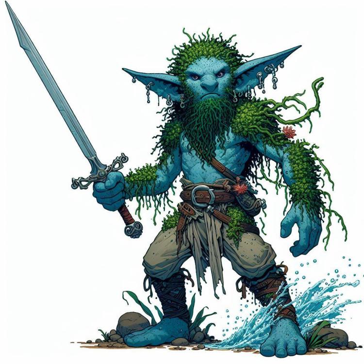 Goblin d'Acqua Umanoide (Goblinoide), Medio, Neutrale Puro Questi goblin sono finiti sul Piano Elementale dell'Acqua, venendo contaminati dalle energie elememtali del piano. Questi goblin hanno sviluppato una simbiosi con delle alghe che vivono sul loro corpo, permettendo loro di respirare sott'acqua, per il resto si sono adattati alla vita acquatica diventando ottimi nuotatori. La loro permanenza sul piano dell'Acqua probabilmente ha influenzato la loro psiche, purgandola dalla malvagità e rendendola un continuo flusso di pensieri e idee. Classe Armatura: 15 (Armatura di Cuoio, Scudo) Punti Ferita: 7 (2d6) Velocità: 9 m, nuoto 9m Caratteristiche Forza: 8 (-1) Destrezza 14 (+2) Costituzione 10 (+0) Intelligenza 12 (+1) Saggezza 8 (-1) Carisma 8 (-1) Abilità: Furtività +6 Sensi: Percezione passiva 9, Scurovisione 18 m Linguaggi: Goblin, Aquan Grado Sfida: 1/2 (100 PE) Fuga Agile: Il Goblin può effettuare l'azione di Disimpegno o Nascondersi come azione bonus a ogni suo turno. Anfibio: Il Goblin può respirare aria e acqua Azioni Scimitarra: Attacco con Arma da Mischia: +4 al tiro per colpire, portata 1,5 m, un bersaglio. Colpito: 5 (1d6 +2) danni taglienti. Spruzzo: Richiamando il proprio potere elementale il Goblin d'Acqua può spendere un'azione per creare davanti a sé una massa d'acqua, che partirà automaticamente verso un bersaglio a sua scelta (che possa vedere e che si trovi entro 36m da lui) effettuando un tiro per colpire con incantesimo. In caso colpisca il sasso infligge 5 (1d10) danni contundenti. Se il bersaglio portava con sé torce, candele o lanterne ci sarà un 50% delle possibilità che esse si spengano. Goblin d'Aria Umanoide (Goblinoide), Medio, Caotico Neutrale Questi goblin sono estremamente giocosi. Talvolta con i loro scherzi possono arrecare danni (anche gravi) agli altri o magari dare inaspettati aiuti, ma a loro importa solo di divertirsi, senza particolari preoccupazioni delle conseguenze delle loro burla sugli altri ma senza nemmeno una reale propensione al bene o al male. Questi goblin, forse a motivo dell'esppsizione prolungata alle energie elementali del Piano Elementale dell'Aria su cui si sono trovati a vivere per un verto periodo, hanno i capelli fatti di fumo e sono grigi. Sono anche esili dei normali goblin, ma non per questo meno pericolosi. Anzi forse l'instabilità, l'incoscienza, l'imprevedibilità e la spensieratezza che caratterizza la loro psiche li rende anche più pericolosi se in quel momento dovessero trovare divertente mettere qualcuno in difficoltà. Classe Armatura: 15 (Armatura di Cuoio, Scudo) Punti Ferita: 7 (2d6) Velocità: 9 m Caratteristiche Forza: 8 (-1) Destrezza 14 (+2) Costituzione 10 (+0) Intelligenza 10 (+0) Saggezza 8 (-1) Carisma 10 (+0) Abilità: Acrobazia +6, Intrattenere +4 Incosciente: il goblin ha vantaggio contro la condizione di Spaventato Sensi: Percezione passiva 9, Scurovisione 18 m Linguaggi: Goblin, Auran Grado Sfida: 1/2 (100 PE) Abilità Fuga Agile: Il Goblin può effettuare l'azione di Disimpegno o Nascondersi come azione bonus a ogni suo turno. Azioni Scimitarra: Attacco con Arma da Mischia: +4 al tiro per colpire, portata 1,5 m, un bersaglio. Colpito: 5 (1d6 +2) danni taglienti. Nube di Nebbia: Il Goblin d'Aria può lanciare in maniera innata nube di nebbia. Quindi crea una sfera di foschia del raggio di 6 metri centrata su di un punto a gittata. La sfera si propaga intorno agli angoli, e la sua area è oscurata pesantemente. Rimane per la durata dell’incantesimo (massimo 1 ora) o finché un vento di velocità moderata o superiore (almeno 15 chilometri all’ora) non la disperde o in alternativa finché la concentrazione del goblin non viene interrotta. Immagini create con la AI di bing Ho creato anche quello di Terra e di Fuoco, ma non mi convince il GS che ho messo, quindi per ora mi fermo a questi, sperando piaccia l'idea.