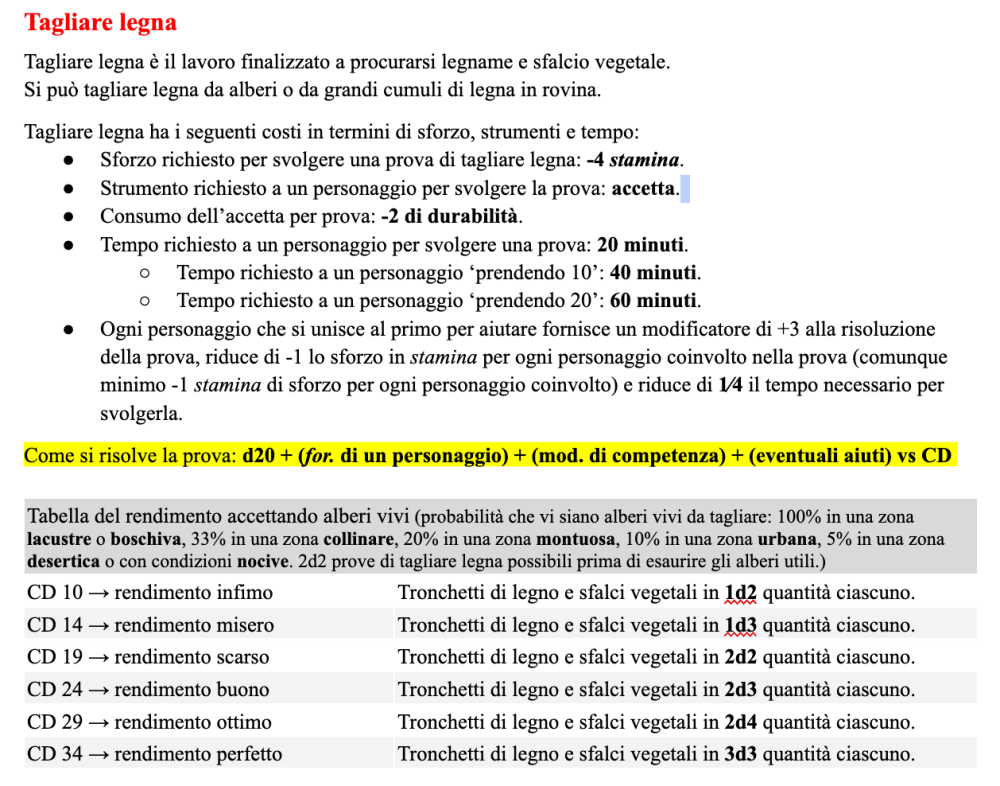 19. Se anche tu sei bravo con excel/google sheet e ti ci trovi a tuo agio, potresti aiutarlo a creare il documento. La scheda che hai fatto per Popovic effettivamente è bellissima. https://docs.google.com/spreadsheets/d/1LYhX9mLcB3hD7vFxlcJRCasfKLSGELYqhsRs1z21RHM/edit?usp=drive_web&ouid=109519260635874140541 Bille Boo aveva fatto questo documento per una precedente campagna, e forse può essere una buona base, anche se va modificato perché il carro a cui Bille Boo fa riferimento qui è diverso dal nostro, che è un carretto a mano le cui caratteristiche non possono essere modificate, mentre l'altro era una carrozza da viaggio addirittura abitabile. A differenza del carro di questo documento, noi in questo momento abbiamo tre inventari: nave, capanno e carretto, quindi questa cosa andrebbe cambiata. Oggi pomeriggio ho provato ad approcciarmi alla questione, ma ho così poca esperienza con excel che non ci è voluto molto prima che iniziassi a trovarla una cosa stressante (credo che, però, una volta pronto un documento potrei essere in grado di inserirci i valori correttamente). Per eventualmente aggiungerci le tabelle del documento dell'intelligenza, questo lo vedo un po' difficile: se il documento originale del manuale che elenca le ricette dovesse cambiare, anche questo documento dovrebbe cambiare; inoltre secondo me sarebbe meglio non costruire a caso tutto il costruibile con ciò che di volta in volta troviamo, ma costruire specificatamente cose che ci interessa utilizzare.