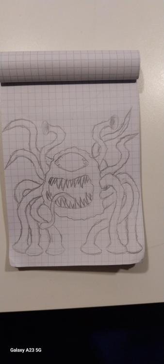 Ecco quì un nuovo beholder cieco, ho cercato di renderlo sfida 4 o 5, quì sotto c'è il bozzetto, ora lo devo colorare e tutto comunque queste sono le statistiche. forza: 12 Destrezza: 14 Costituzione: 14 intelligenza: 13 Saggezza: 11 Carisma: 9 abilità: onda d'urto: beholder a inizio di ogni suo turno genera dai due tantacoli divesi dagli altri genare un'onda d'urtoche spinge i PG indietro di 3 metri, se vieni sbalzato e sei nel campo d'azione del mostro generi un attacco di opportunità, il raggio dell'onda d'urto è 9m, e grazie a questa il beholder sa la vostra posizione, se non vi muovete ,per il prossimo round. multiattacco:il beholder fa due attacchi in mischia con i tentacoli o un attacco in mischia e uno con l'onda d'urto. tentacoli: +5 al tiro per colpire, colpito 10(2d6+1) danni taglienti, il tentacolo può afferrare fino a un personaggio di taglia media o inferiore, all'inizio del proprio round il besagio avvinghiato subisce 4(1d6) danni da forza, può usare la suo azione per liberarsi con un TS su forza CD13. onda d'urto: il beholder può generare un'onda durto più potente per localizzare i nemici che si muovono, l'onda d'urto sbalza i nemici devono superare un TS su costituzione CD15 se lo falliscono subiscono 8(2d4+3) danni contundenti non dimezzabili e cadono, se lo superano vengono sbalzati di soli 3m e subiscono metà di quei danni Spero vi piaccia questo mostro, datemi nuovi consigli su come migliorarlo o su cosa creare.