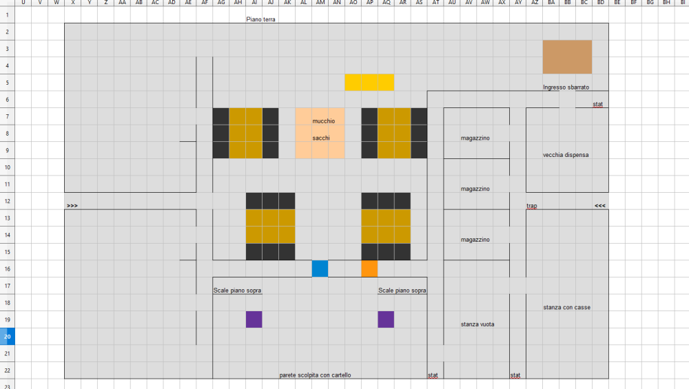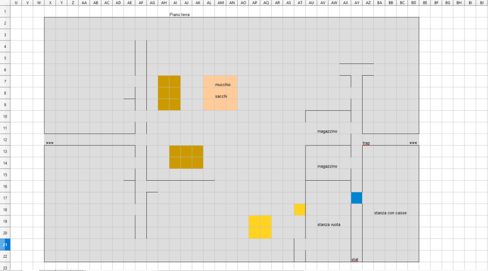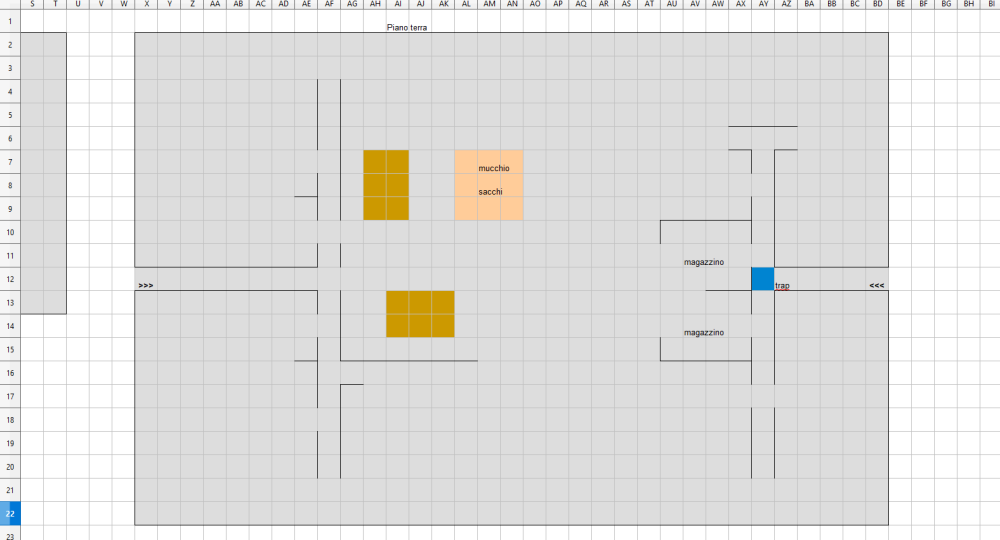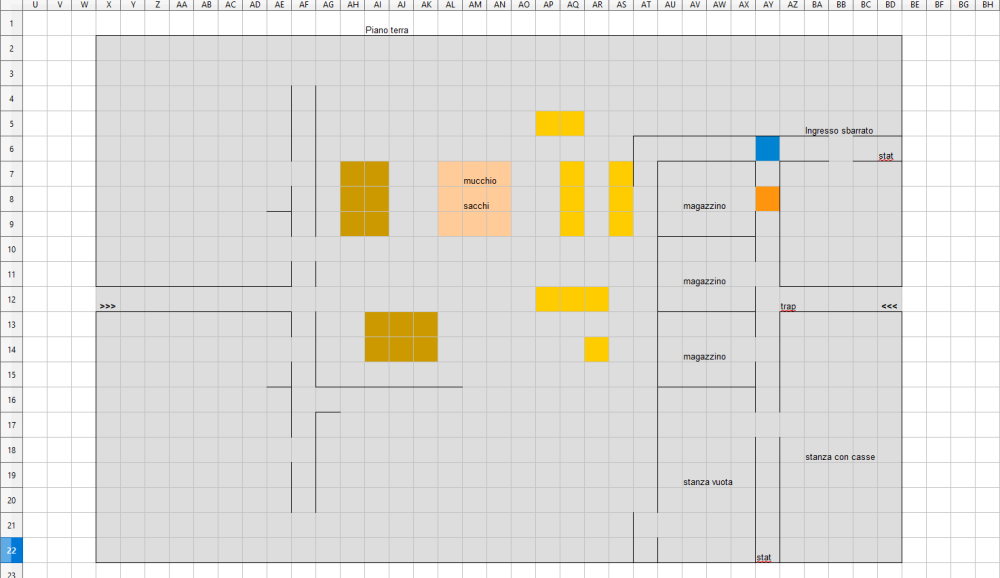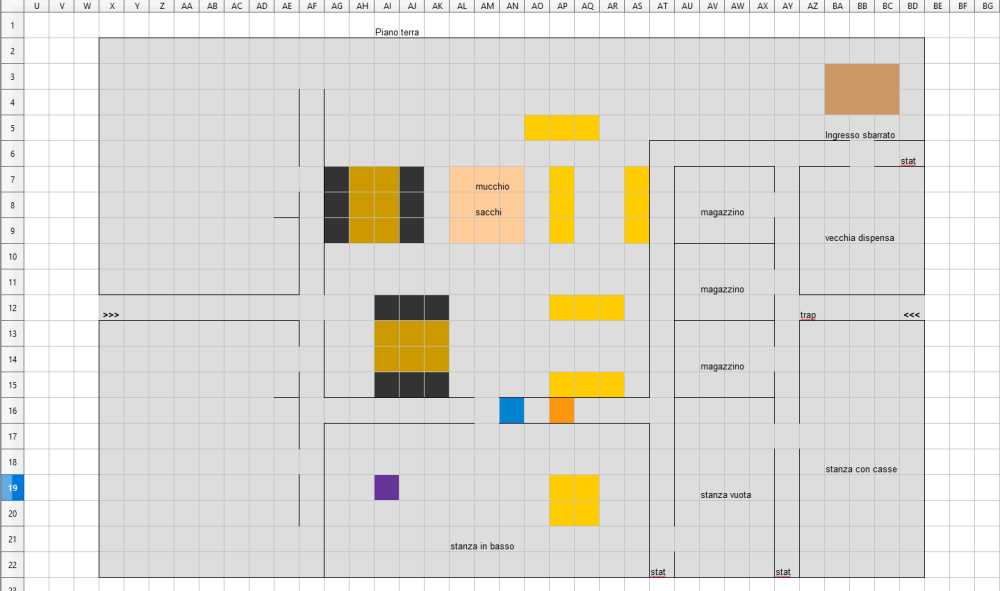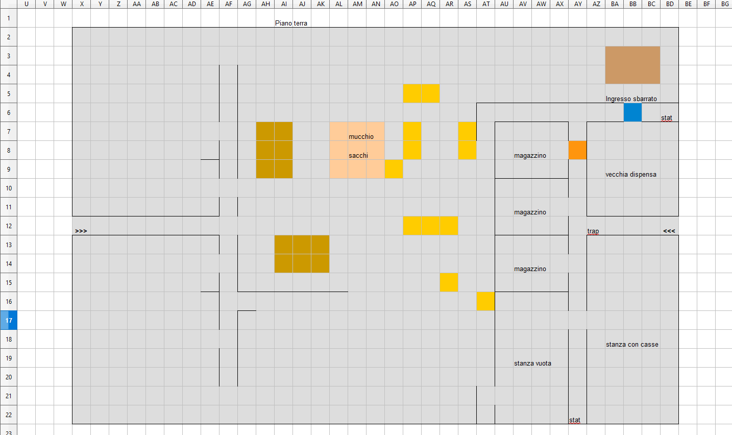 Lo scheletro è entrato nel corridoio da AY 16. Ha trovato la strada sbarrata ed è tornato indietro. Ha fatto il giro, non sapete passando per dove, ed è sbucato da sopra in AX6. E' entrato nel magazzino AX11 a fare le sue cose e poi se ne è tornato via dalla stessa strada. Ovviamente se gli volete bloccare di nuovo il passaggio o interagire con lui nel mentre siete liberi di farlo.