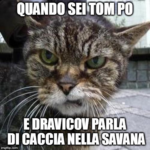 DM x Dravicov, Chandra e Golban I prigionieri, che come Golban potè confermare avevano un animo corrotto dalla malvagità delle loro azioni, si dimostrarono ribelli alle richieste di Dravicov, che come un novello Thorlum cercò di strappare loro informazioni usando minacce e intimidazioni No, non parleremo! risposero gli schiavisti Le torture che subiremmo sarebbero ben peggiori fu la loro giustificazione. Il gruppo ben prestò convenì nel rimettere la decisione nelle mani di Reksis, il quale riflettè per diversi minuti prima di prendere la loro decisione Verranno in guerra con noi e combatteranno a fianco di coloro che volevano maltrattare. I nemici non saranno più indulgenti, ma se sopravvivranno potremo valutare l'onore che avranno dimostrato sancì. La sentenza non fu accolta bene dagli imputati, che sbuffarono e soffiarono diverse volte, salvo essere infine scortati via verso una tenda. Presto i tre sarebbero stati armati, ma anche tenuti sotto stretta sorveglianza. Il viaggio verso la Foresta dei Rovi non cominciò sotto i migliori auspici, soprattutto per Winn'Ier, i cui voti imponevano una costante allerta per procacciarsi il cibo di cui aveva bisogno. Il territorio a nord di dove si erano accomiatati da Reksis non sembrava presentare molta fauna, nemmeno branchi di erbivori. L'unico tiro fortunato fu quello di Dravicov, il quale fu in grado di centrare un avvoltoio che si stava nutrendo del poco che rimaneva della carcassa di un emù. Il volatile non avrebbe certo vinto una gara culinaria, ma il nativo di Frondargentea fu comunque in grado di ricavarne un po' di carne, che impedì in parte il ricorso alle scorte del gruppo, accompagnate dal sottofondo musicale dello stomaco brontolante dell'uomo orso. La sera nella Savana, fresca al punto di far correre un leggero brivido lungo la schiena, non venne però solo funestato dalla presenza della luna rosso sangue a cui ormai si erano abituati, né dal frinire delle cicale, ma anche dal successo di Chandra: ella era riuscita a divinare Oskrim Mazza Insanguinata, un orco dal portamento imponente quanto il fisico, vestito da un'armatura pesante e recante in spalla un randello pesante, intento a parlare attorno a un fuoco da campo con altre figure. L'orco sembrava aver visto giorni migliori, ma era vivo. La barda potè a malapena avvisare i suoi compagni della novità, tuttavia, prima che un ruggito risuonasse nella buia Savana e un paio di fiere piombassero contro gli eroi. Esse erano pantere, ma grandi come mai prima d'ora se ne erano viste come tali, alte al garrese più di due metri e mezzo dal pelo corto e scuro, sebbene oltre agli artigli e alle zanne i felini ostentassero anche una coppia di lunghi tentacoli terminanti in ventose a guisa dei polipi del mare... o dell'assente elocatrice Celeste nei suoi giorni peggiori. Le creature dai corpi atletici non aggredirono il gruppo come avrebbero fatto le loro più piccole controparti presenti in natura, ma tenendosi dalla distanza cercarono di sferzare i loro nemici a colpi di tentacolo. Come peraltro gli sbigottiti avventurieri ebbero modo di notare, esse sembravano confondersi con l'oscurità, i contorni che sembravano quasi svanire e contorcersi con l'aria circostante, rendendo difficile determinarne l'esatta posizione del corpo. X tutti, esito della prima parte del viaggio (un giorno superato) x tutti