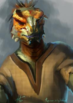 DM x Chandra e Dravicov x Golban Anche dalla sua postazione sopraelevata, Tom Po non aveva avuto difficoltà a notare come già le parole di Sharifa avessero messo in notevole difficoltà il predicatore, oltre ad essere forse l'unico ad accorgersi della presenza di Dravicov, che nonostante le buone intenzioni venne a malapena considerato dopo l'arrivo in scena della discendente di Anzalisilvar. L'irruzione in scena di Chandra, infatti, fu delicato quanto quello di Seline in una cristalleria, al punto che diversi degli abitanti, alla vista della nuova forma della Silverhand, caddero bocconi in preda alla paura, facendo il vuoto attorno a colui che fino a poco prima aveva raccolto l'attenzione di un nutrito gruppetto di persone I-io sapete che cosa faccio? Io vi mando un bacion-- le parole morirono in gola al predicatore, quando Liang lo accusò pubblicamente di associazione a delinquere con i demoni, un'accusa che venne rimarcata da Sharifa. Non ci volle molto perchè l'indignazione serpeggiasse tra gli abitanti Demoni? Io non voto per dei demoni! esclamò un basso agricoltore tirando un sasso contro il predicatore, il quale fu presto costretto alla fuga sotto un lancio di macigni. Fu allora che una delle guardie richiamò gli eroi affinchè essi raggiungessero l'edificio più importante della città, dove lo shayk li aspettava. A discapito della grandezza degli antichi templi dell'Impero, la dimora dello shayk si trovava al piano terra di una costruzione di medie dimensioni, che un tempo doveva essere stata una biblioteca, ora unico posto in cui venivano conservate le antiche conoscenze di un tempo che erano sopravvissute al degrado e all'inesorabile scorrere del tempo. Ad accoglierli, guardato a vista da due guardie, era un lucertoloide alto ed esile, coetaneo di Sharifa, dalle scaglie di un color giallo lucente marcate in certi punti di un color simile all'ottone Sorella! esclamò, dirigendosi ad abbracciare Sharifa il lucertoloide si rivolse quindi agli stranieri con un cenno del capo Musaaid Al Rasul Gli amici di Sharifa sono i benvenuti qui nell'Impero. Il mio nome è Musaaid Al Rasul, shayk dell'Impero, in cui giungete in tempi ancora più cupi di quanto il declino non ci avesse già offerto esordì, invitando gli avventurieri a sedersi a terra, dove stuoie erano state disposte in cerchio. Accomodatosi, lo shayk offrì una ciotola di datteri da far girare per poi proseguire Speravo che Acquastrino ci avrebbe fornito più uomini, ma so che i semplici numeri non sono indice del valore di un esercito. La situazione che trovate è assai grave: tre giorni fa la tribù degli orchi di Oskrim Mazza Insanguinata è stata decimata, gli abitanti che sono riusciti a fuggire esuli in cerca di aiuto. Noi abbiamo deciso di aprire le nostre porte, poiché a bussare non erano nemici, ma persone disperate in cerca di aiuto. Essi però hanno perso la loro speranza, nel momento in cui Oskrim non è giunto qui. Senza un capo sono demotivati, incapaci di poter fare nulla... Musaaid scosse la testa Il Flagello Blu, Tyrigaryanthilax, sta allungando la sua ondata di male nero verso nord e, anche se avremo la fortuna di essere gli ultimi, anche noi cadremo. Abbiamo provato a mandare messaggeri ai felinidi della Foresta dei Rovi, a due giorni di viaggio ad est da qui, per chiedere aiuto, ma essi già non giungevano da noi da due settimane disse per poi guardare Tom Po Lei è il primo che vedo, da allora. E' successo qualcosa di grave anche a loro? domandò. Quindi riprendendo l'argomento principale Gli gnoll, che si trovano ad altrettanti giorni di viaggio a sud-est, hanno risposto, ma minacciando di uccidere i futuri messaggeri che avremmo inviato. Il loro capo Garrik, detto il Re delle Croci, ha rifiutato qualsiasi dialogo con noi. Come se non bastasse, le vie sono diventate più pericolose per colpa degli schiavisti delle tribù nomadi. Insomma... la situazione più difficile che potessimo trovarci a gestire. Musaaid attese quindi le parole degli stranieri, rinnovando il suo interesse per il loro arrivo Quali novità dal nord? Avete un piano? Domande? X tutti