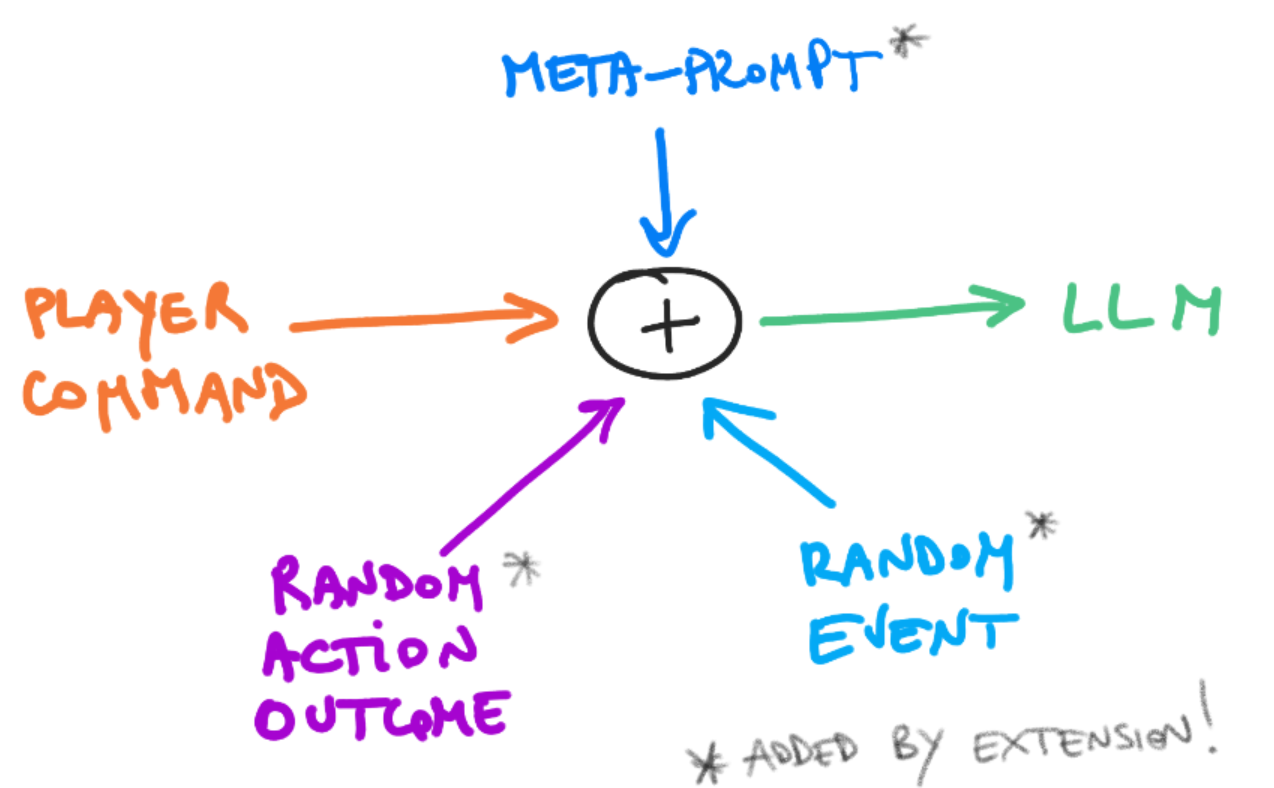 2. Eccomi di nuovo qua con un bel post chilometrico, per aggiornarvi sull'evoluzione dei nostri lavori più recenti e nel dettaglio discutere su alcuni problemi che abbiamo riscontrato nella creazione delle nostre avventure testuali e di come abbiamo cercato di risolvere tali questioni. Sperando la cosa possa interessare. L’Estensione per Avventure Testuali Emergenti Con il rilascio da parte di Google dei modelli "Gemini 2.0 Flash Thinking Experimental 01-21" e "Gemini 2.5 Pro Experimental 03-25" per Google AI Studio, abbiamo deciso di sviluppare un’estensione per browser che sfruttasse le capacità di "thinking" dei modelli Gemini utilizzati come “game engine” di avventure testuali, facendo emergere l’avventura stessa dall’interazione tra giocatore, estensione e Gemini, aiutandoci a superare i problemi tipici dei modelli generativi. Il problema di base con le LLM come “master” Uno dei due “difetti” maggiori che abbiamo riscontrato nei modelli generativi di IA nelle migliaia (davvero!) di test che abbiamo fatto con prompt di ogni tipo e modelli piccoli, medi, grandi con o senza ragionamento, è che tendono a "imbrogliare" quando si richiedono eventi o esiti di azione causali: quello che accade è che il modello “sceglie” il numero casuale in modo da restare coerente con quanto scritto finora e “assecondare” il prompt scritto dal giocatore. Il secondo grande difetto infatti è che, intimamente, un modello LLM (large language model, cioè un intelligenza artificiali in grado di riconoscere e generare testo, come ChatGPT o i modelli rilasciati da Google...) è stato addestrato per eseguire quanto richiesto, in maniera accondiscendente: anche se il nostro primo prompt dicesse esplicitamente di comportarsi da “master implacabile e punitivo”, la richiesta iniziale potrebbe passare in secondo piano se in seguito le diamo un comando contrario, ad esempio chiedendo esplicitamente di salvare il personaggio e questo può avvenire anche in maniera implicita quando il modello “presuppone” (ovvero interpreta) che questa sia la richiesta, non espressa, dell’utente. Oggi le intelligenze artificiali hanno raggiunto un livello di potenza tale che è sufficiente un prompt generico come "Vorrei giocare a un gioco di ruolo, tu fai da master" o come "Fammi da master per l'avventura La tomba dei re Serpente" per essere condotti in un'avventura, con l'AI che assume il ruolo di master, in modo apparentemente efficace. Tuttavia, affidarsi a un prompt poco strutturato non risolve alcune importanti problematiche intrinseche dello strumento. Permangono le questioni legate all'assenza di vera casualità, all'accondiscendenza dell'AI che sembra quasi dotare il giocatore di una sorta di "plot armor" per farlo avanzare nella storia, alla sensazione latente di una qualche forma di "railroading" e, in generale, allo sviluppo narrativo che tende a risultare un po' piatto e privo di guizzi. La vera sfida che ci siamo posti è capire come formulare prompt che vadano oltre questa sorta di “superficie banale” e superino quindi le limitazioni che abbiamo evidenziato. Realizzare un sistema di prompt efficace e che sfrutti appieno le potenzialità ludiche dell'AI è tutt'altro che semplice e richiede riflessione, una certa competenza tecnica e molti, moltissimi test. L'idea alla base dell'estensione per browser Da qui l’idea di sviluppare questa estensione per browser, che segue l’idea schematizzata qui: Il comando del giocatore viene intercettato e “incapsulato” in un comando più grande così composto: il comando effettivo del giocatore la richiesta di valutare la difficoltà del comando richiesto per il personaggio come master esperto di RPG, in base alla situazione attuale nel gioco: se l’azione è ritenuta banale allora ha successo automaticamente, altrimenti il modello viene avvertito che il giocatore ha già tirato un dado e determinato l’outcome della sua azione, e questo esito viene pescato a caso dall’estensione da una lista “fissa” la richiesta di valutare se sia opportuno introdurre un evento casuale, pescato da una lista fissa dell'estensione, in base al momento attuale del gioco (troppo presto? c’è già un combattimento in corso? è già successo qualcosa di simile nel gioco recentemente?). La valutazione, da effettuarsi con la competenza di un master RPG, dovrà considerare fattori come la prematurità dell'intervento, la presenza di combattimenti in corso, o la recente occorrenza di eventi analoghi. Inoltre vengono richieste delle formattazioni particolari nella risposta in modo da dividere il ragionamento dalla narrazione che deve essere mostrata nell’interfaccia. Il nuovo comando, dato dalla somma di questi elementi, viene a questo punto inviato automaticamente a Google AI Studio e appena la risposta è pronta, essa viene filtrata da tutte le parti di ragionamento e solo la parte narrativa viene ricopiata nell’interfaccia dell’estensione. Funzionalità principali dell'estensione L’estensione, quindi, si fonda su due funzionalità chiave. Da un lato, si sovrappone un’interfaccia a Google AI Studio per filtrare la risposta di Gemini, separando in modo nettamente distinguibile la parte di “thinking” (il ragionamento interno) dalla narrazione destinata all’interfaccia. Dall’altro lato, aggiunge ai comandi del giocatore dei meta-comandi che aiutano il modello a generare situazioni creative, arricchendo gli scenari con esiti pseudo-casuali che, però, rimangono comunque valutati dal modello stesso. Questa doppia azione non solo rende più interessanti le situazioni di gioco, ma permette anche di superare i due principali difetti dei modelli generativi, sfruttando una delle caratteristiche più affidabili degli LLM: seguire con precisione gli ordini più recenti. Questo approccio rende le situazioni di gioco non solo più interessanti, ma anche più coerenti, perché il modello tende a dare priorità agli input più recenti ricevuti. Se vo