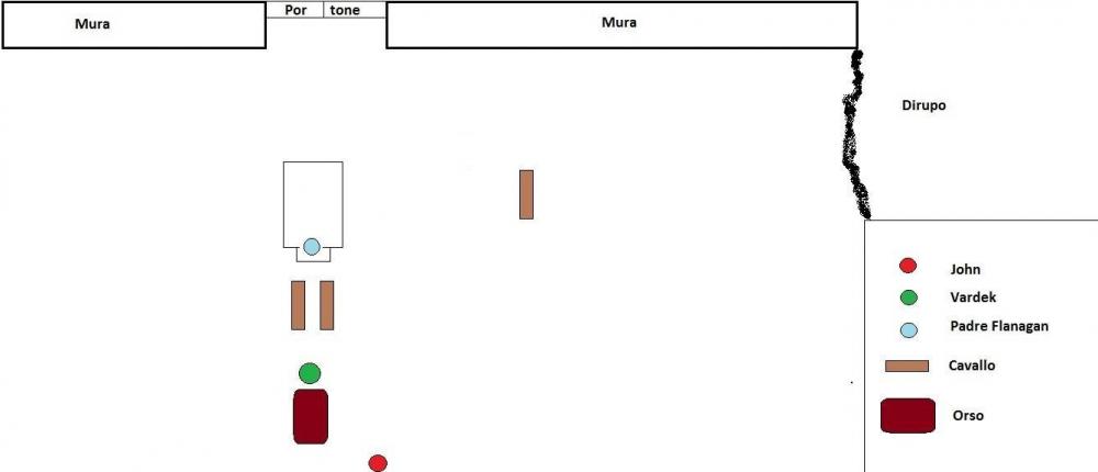 Vardek incassa il morso grosso plantigrado e senza battere ciglio...alza il braccio che regge l'ascia sopra la testa e lo cala colpendo l'orso alla base del collo e sebbene la pelle spessa abbia attutito la ferita , l'ascia gli ha provocato una bella ferita profonda tanto da fargli perdere la presa del morso... @ Vardek l'orso agita la testa infuriato e si alza sulle due zampe posteriori arrivando ad un altezza che supera i tre metri , da quella posizione cerca di colpire con gli artigli il barbaro ma entrambi i colpi vanno a vuoto... Intanto John non visto aggira l'orso portandosi alle sue spalle... Il prelato intanto fatica sempre di più a tenere i cavalli che iniziano a sclapitare sempre più nervosamente. ed il raschiare aumenta in maniera preoccupante e cominciate a sentire il legno del portone che inizia a cedere... @ Mappa @ Tutti