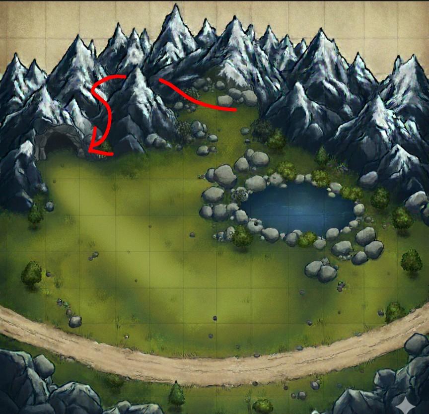 Alzabuk ha risposto a Fandango16 a un discussione Regole e organizzazione in Tuern - L'isola dei draghiEcco la mappa! in rosso un prima idea di come potremmo avvicinarci alla caverna che, se ben ricordo, non dovrebbe avere collegamenti col sottosuolo.