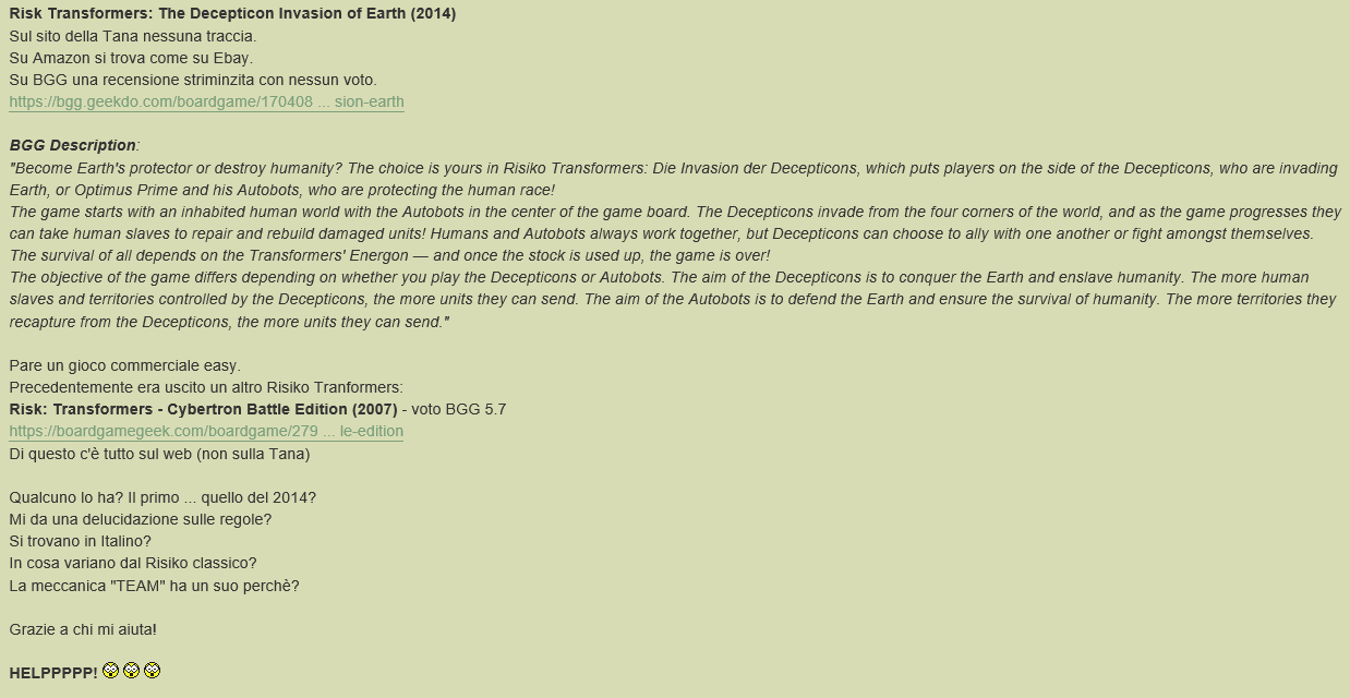 Risk Transformers 2014 - chi lo conosce? Chi lo ha giocato?